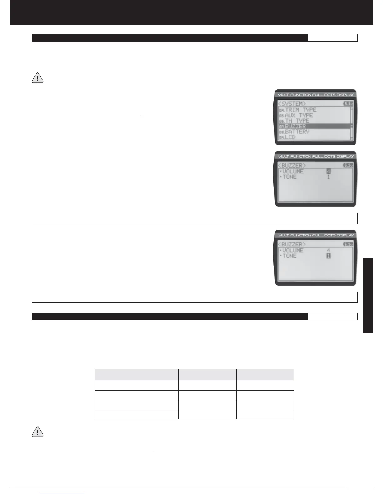 alarms will sound. This allows you to choose custom voltage settings to match the type of transmitter battery you're using. For