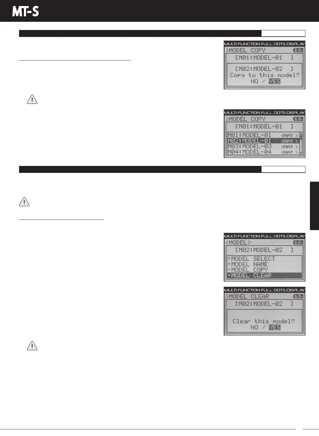 When the Model Clear function is EXECUTED, all custom Programming Data for the currently selected model will be reset