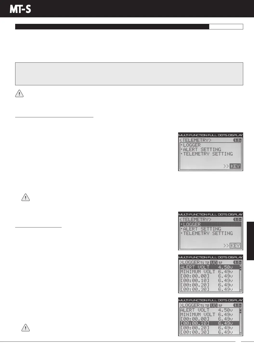 section on pages 64 and 65. In addition, to be able to read and log Telemetry Data, the Telemetry System must be turned ON.
