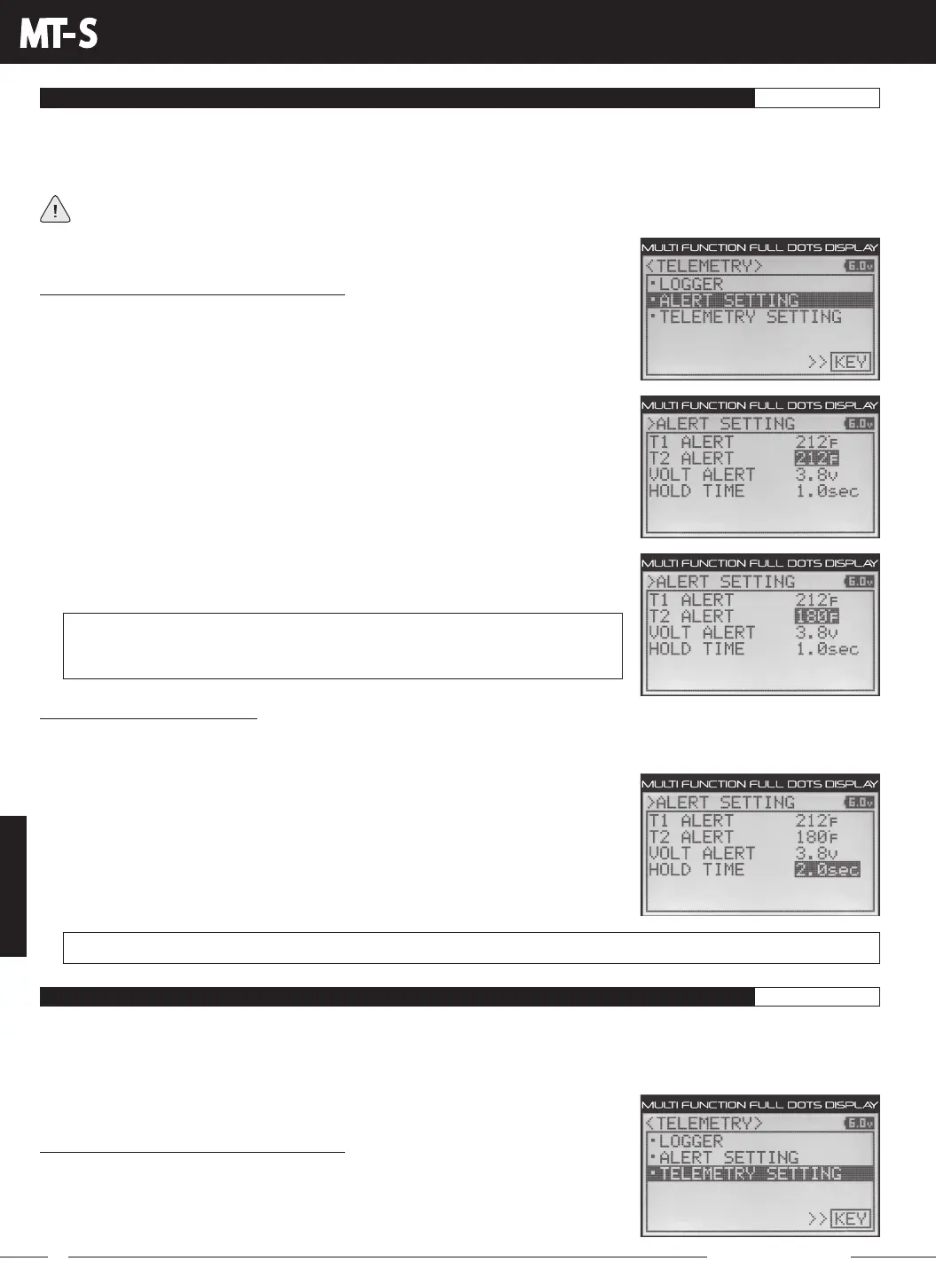 The ALERT SETTING menu allows you to change the values at which the different Telemetry Alert alarms will sound. For