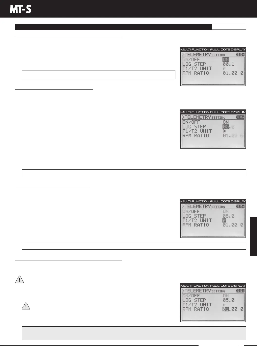 TELEMETRYSETTINGLOGSTEPsettingrangeis00.1to45.9.Thedefaultsettingis00.1.
