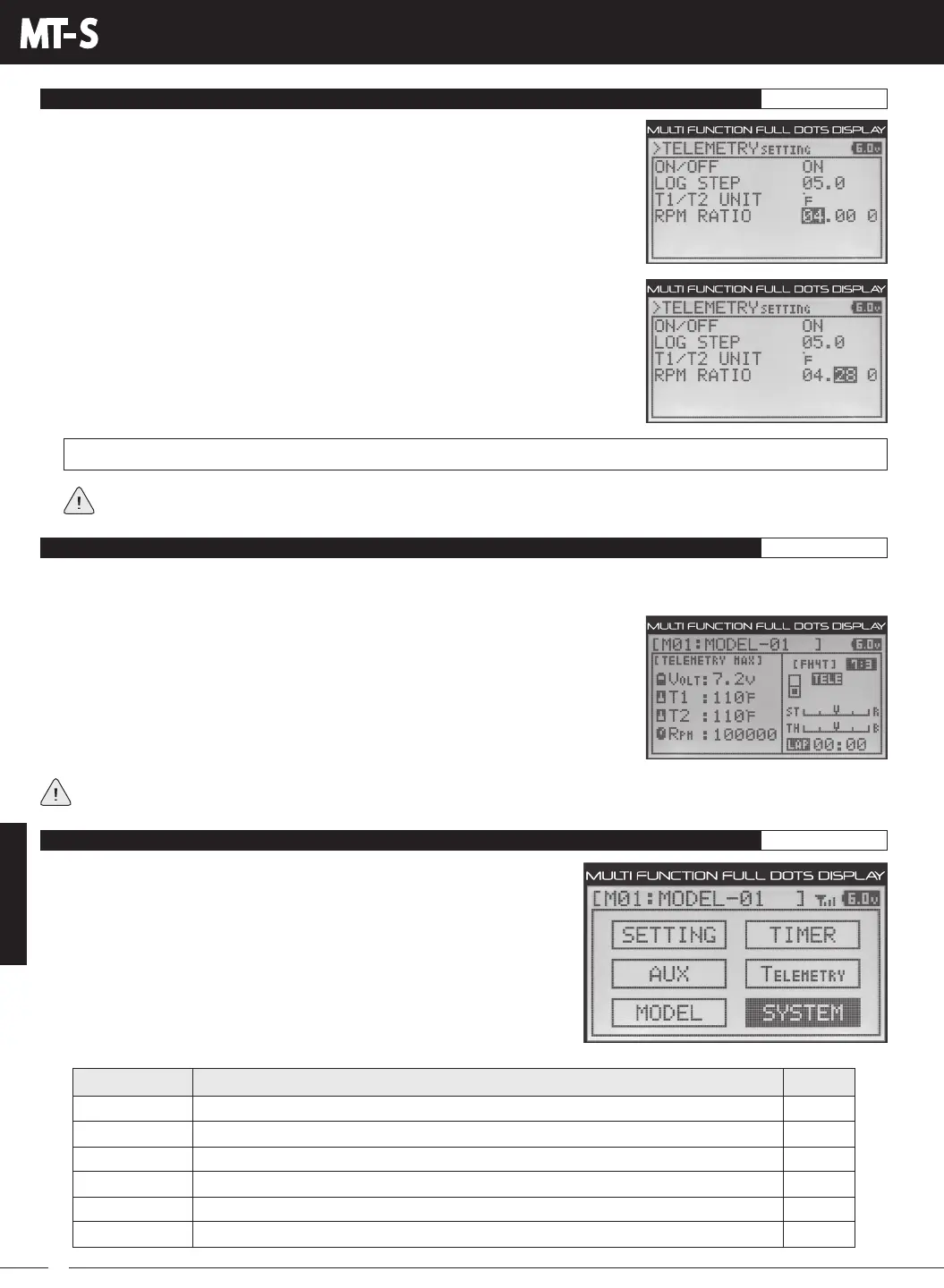 TELEMETRYSETTINGRPMRATIOsettingrangeis1.000to64.999.Thedefaultsettingis1.000.