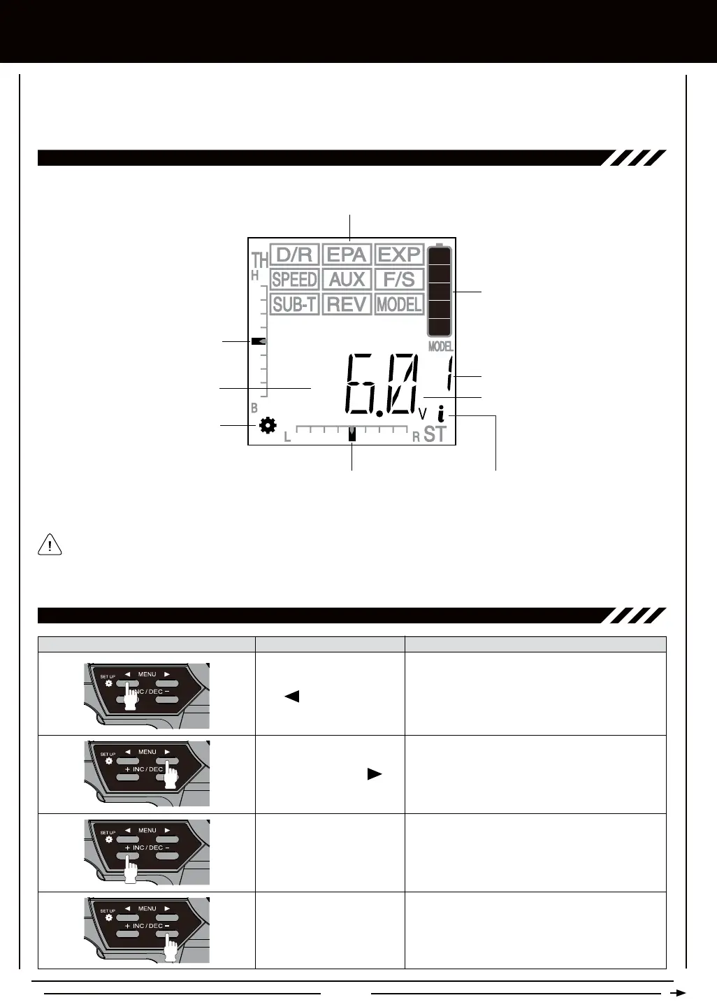 onto the display. For example, when you enter the SETUP menu and highlight D/R, MOD will be displayed in the Programming