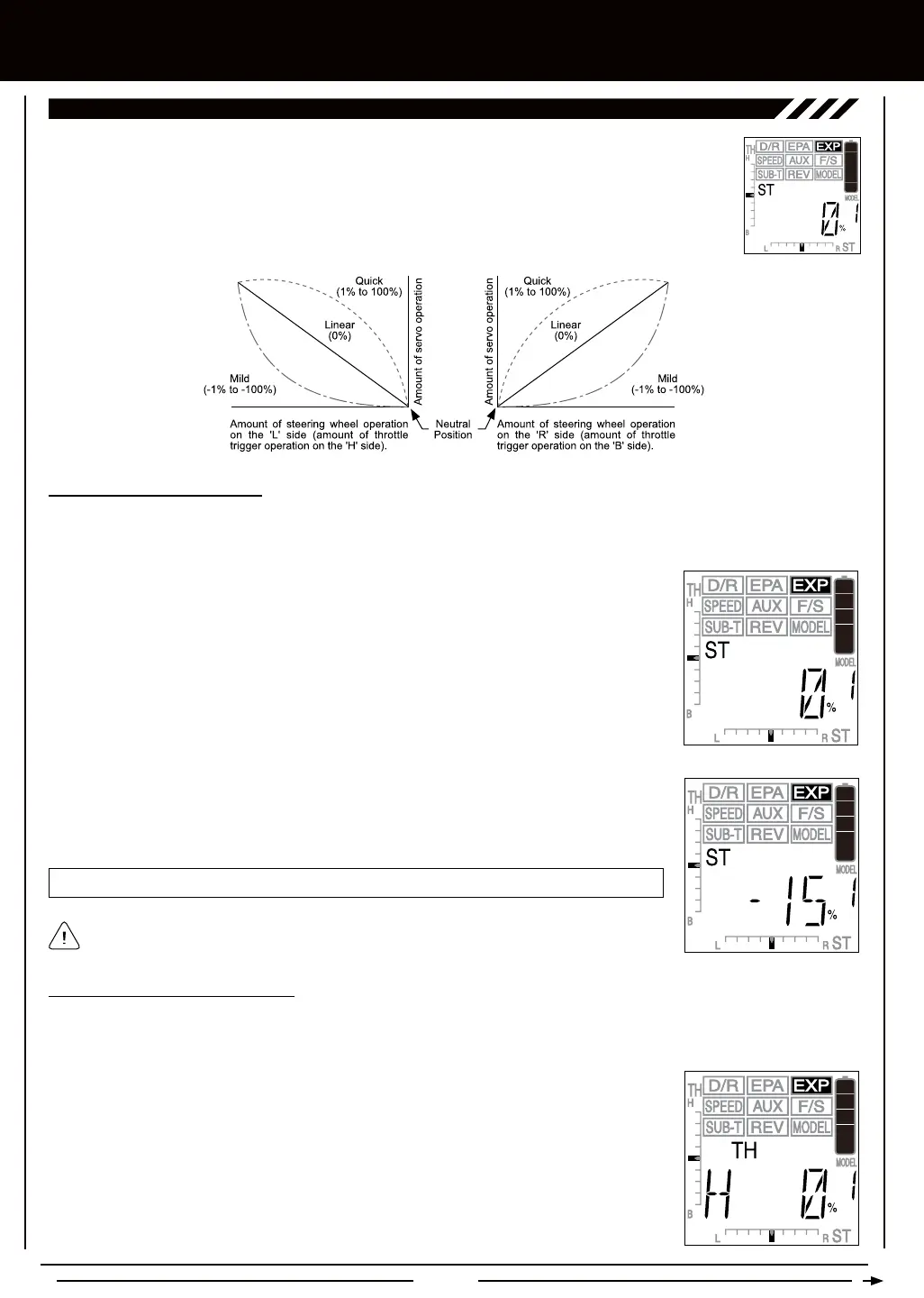 EXP-ST setting range is -100% (Mild) to 100% (Quick). The default setting is 0% (Linear).