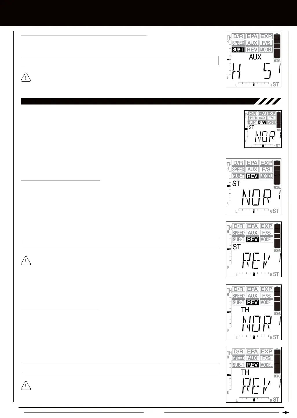 1) Press the Right or Left MENU key to highlight the REV menu. ST NOR will be displayed in the
