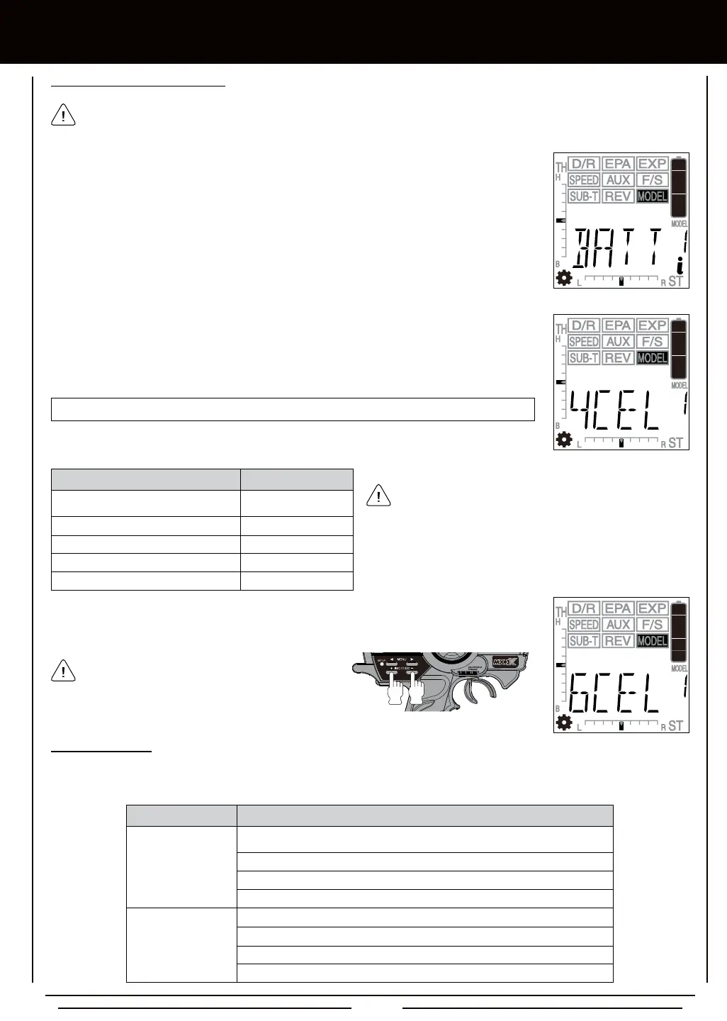 Count, you should rst fully-charge your battery before installing it into the transmitter and choosing the Battery Cell Count.