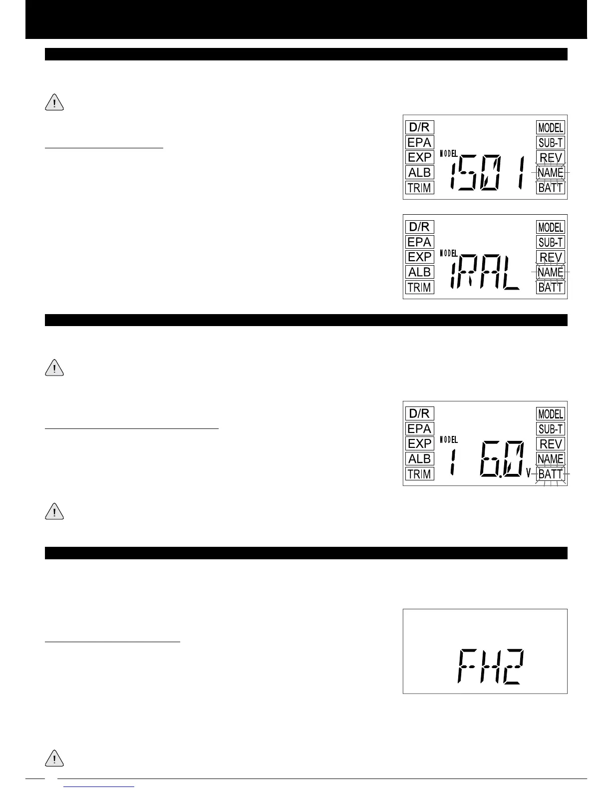 The BATT menu is the transmitter's default menu. Each time the transmitter is turned ON, the BATT menu will be displayed.