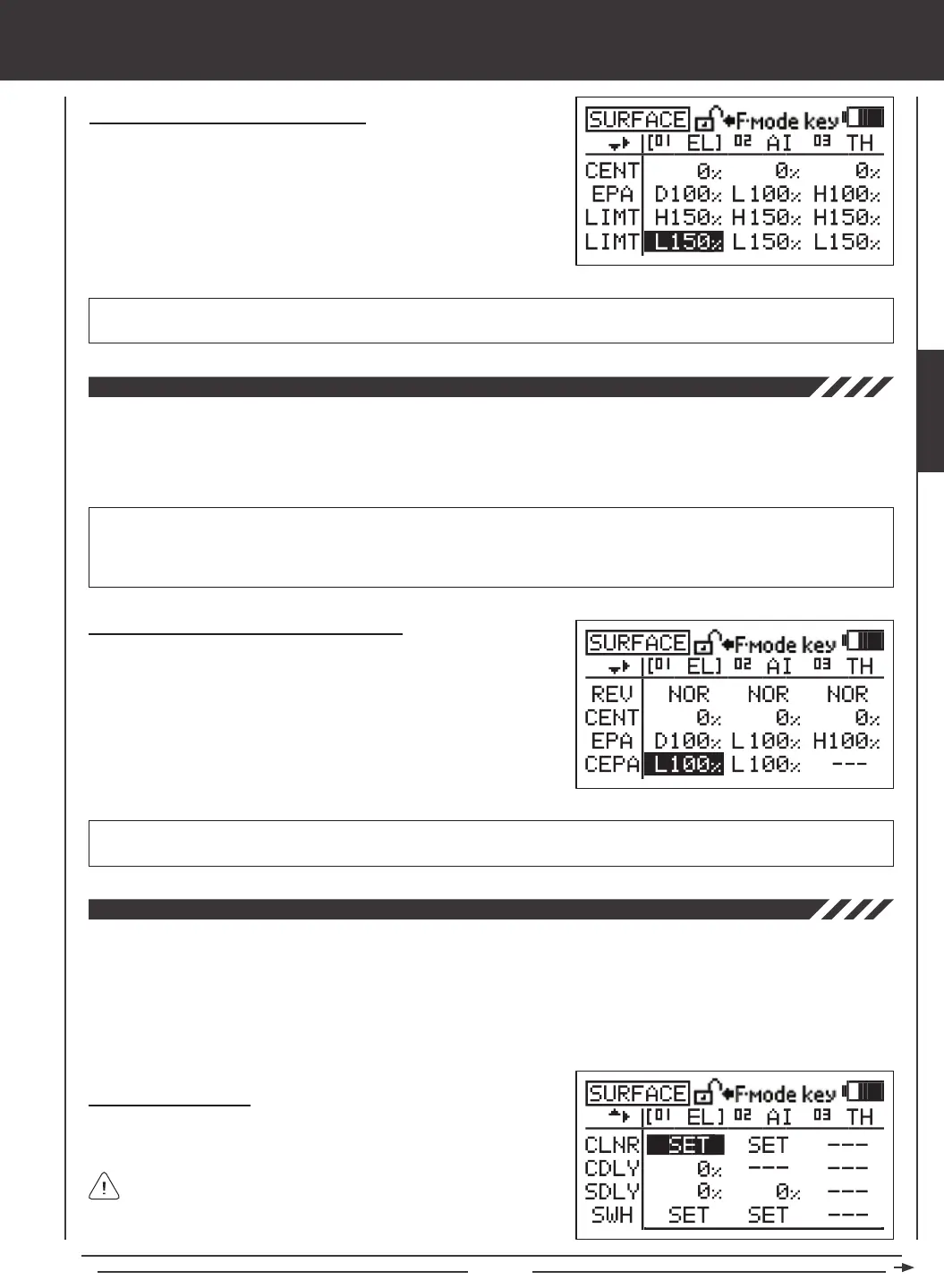 The CCPM End Point Adjustment function allows you to adjust servo travel in each direction for the elevator, aileron, and pitch