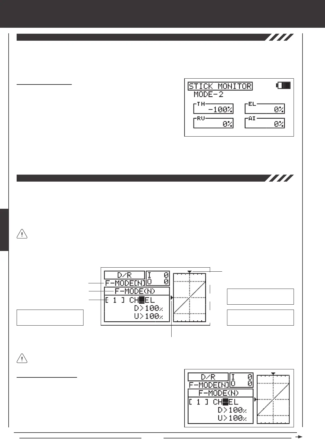 The Stick Monitor function displays the current position of the control sticks as a percentage of total control stick movement in 1%