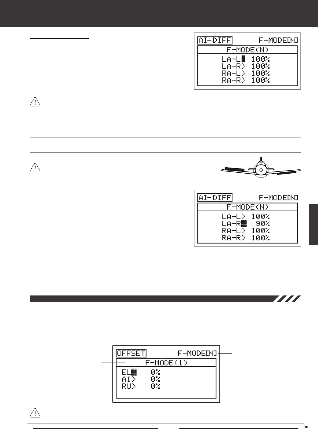 2) Press the YES/+ or NO/- keys to set the desired Aileron Differential