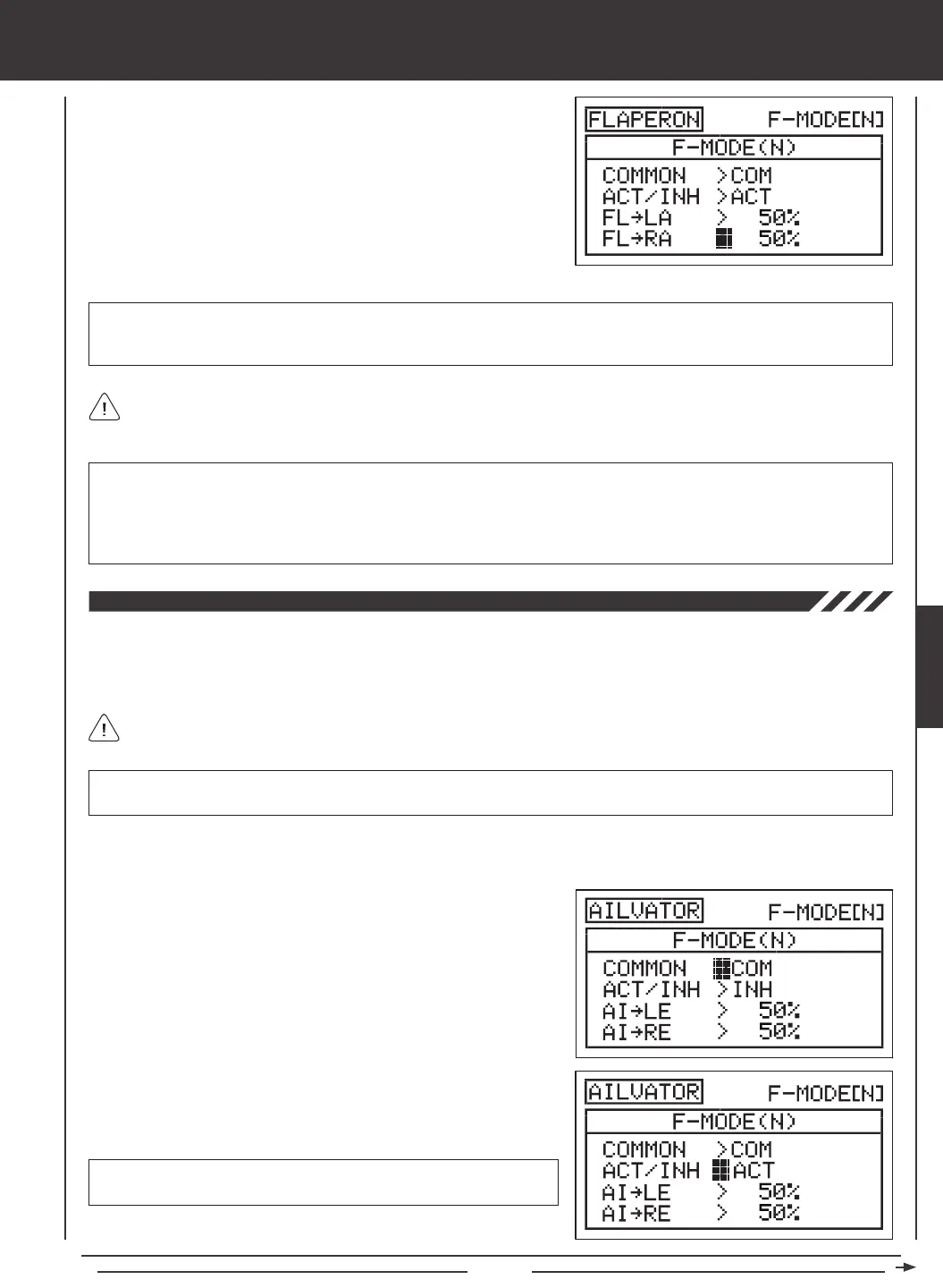 then press the YES/+ or NO/- keys to change the Flaperon