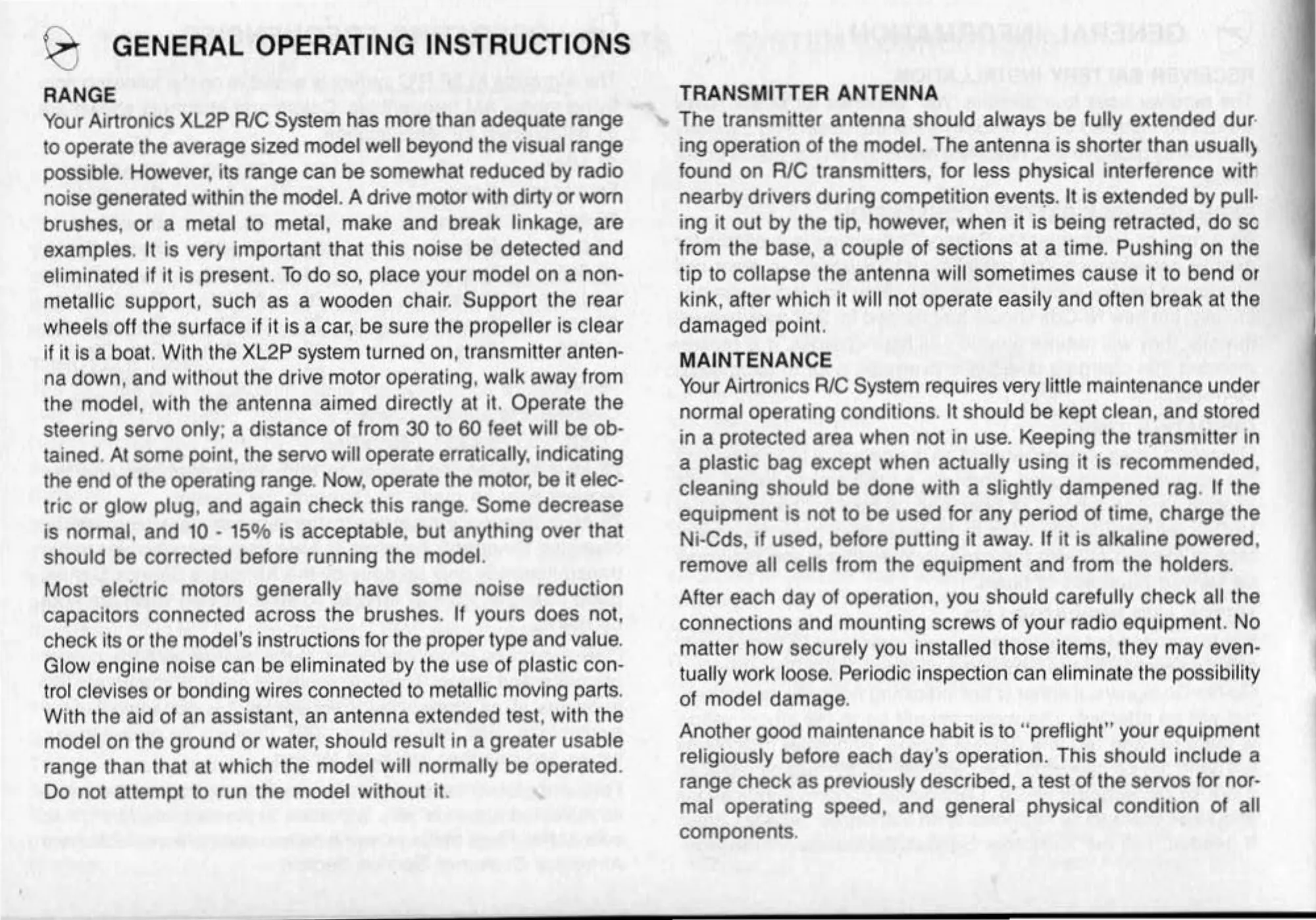 Your Airtronics R/C System requires very little maintenance under