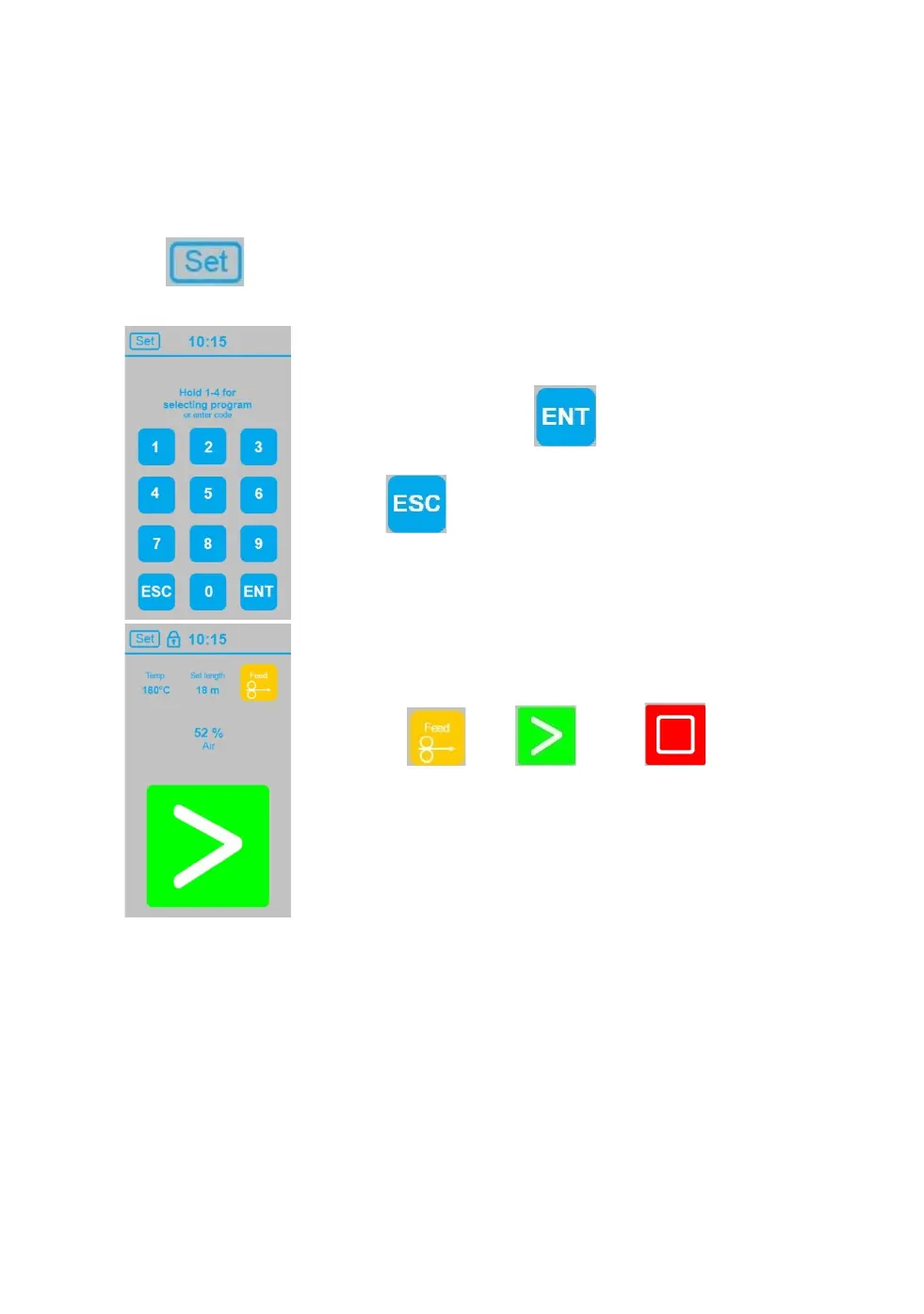 Touch “SET” enter code and touch “ENT” to confirm and