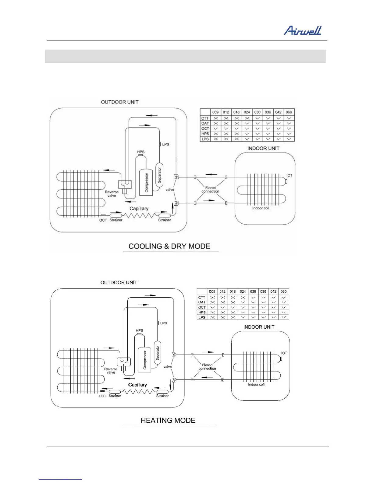 Airwell DAF009 - REFRIGERATION DIAGRAMS; 10.1 Cooling and Dry Mode; 10.2 Heating Mode