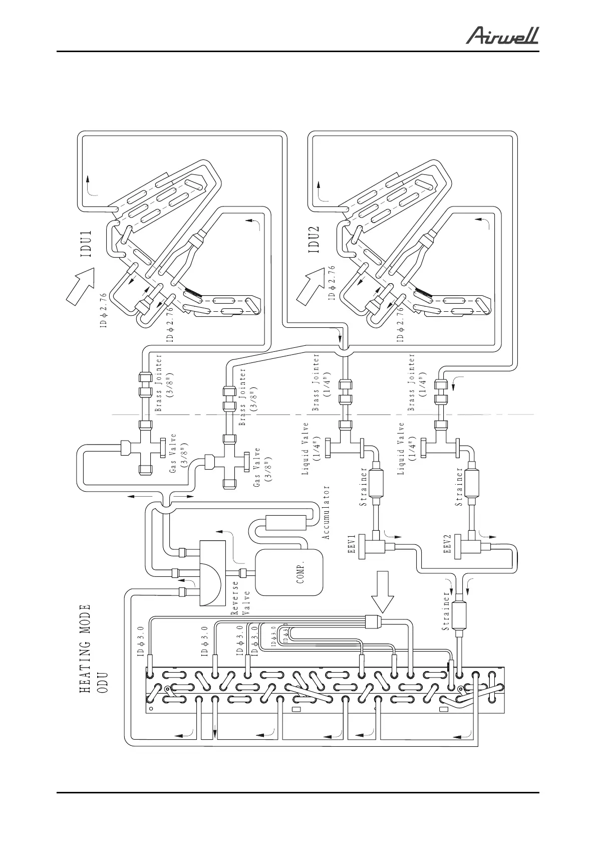 Airwell Multi Split DUO 50 DCI - Heating Mode Refrigeration Diagram