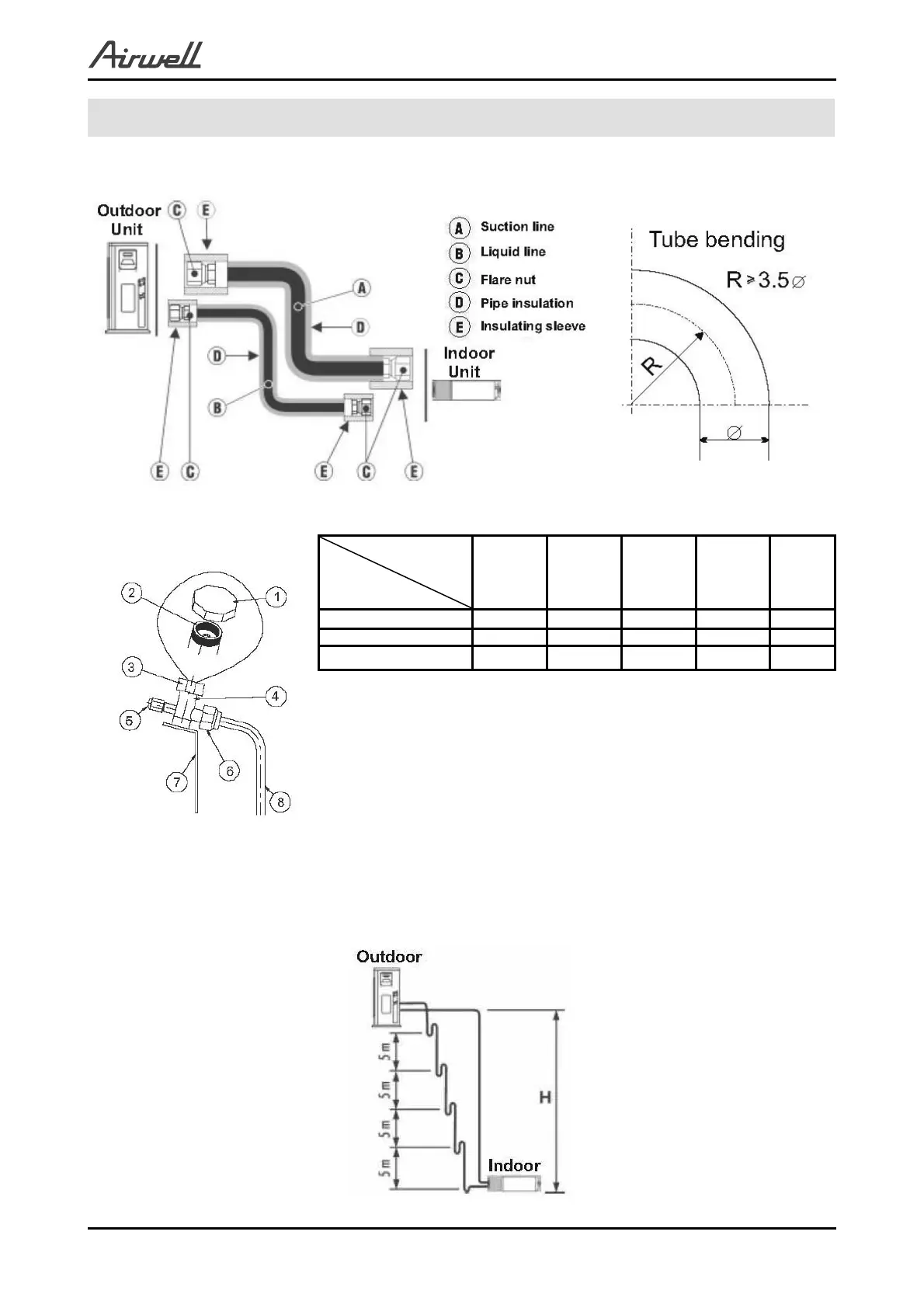 When the outdoor unit is installed above the indoor unit an oil trap is required every 5m along the suction