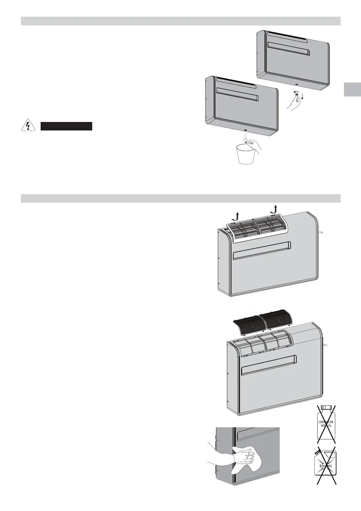 reinigen. Kein Wasser auf die Einheit gießen. Es könnte die