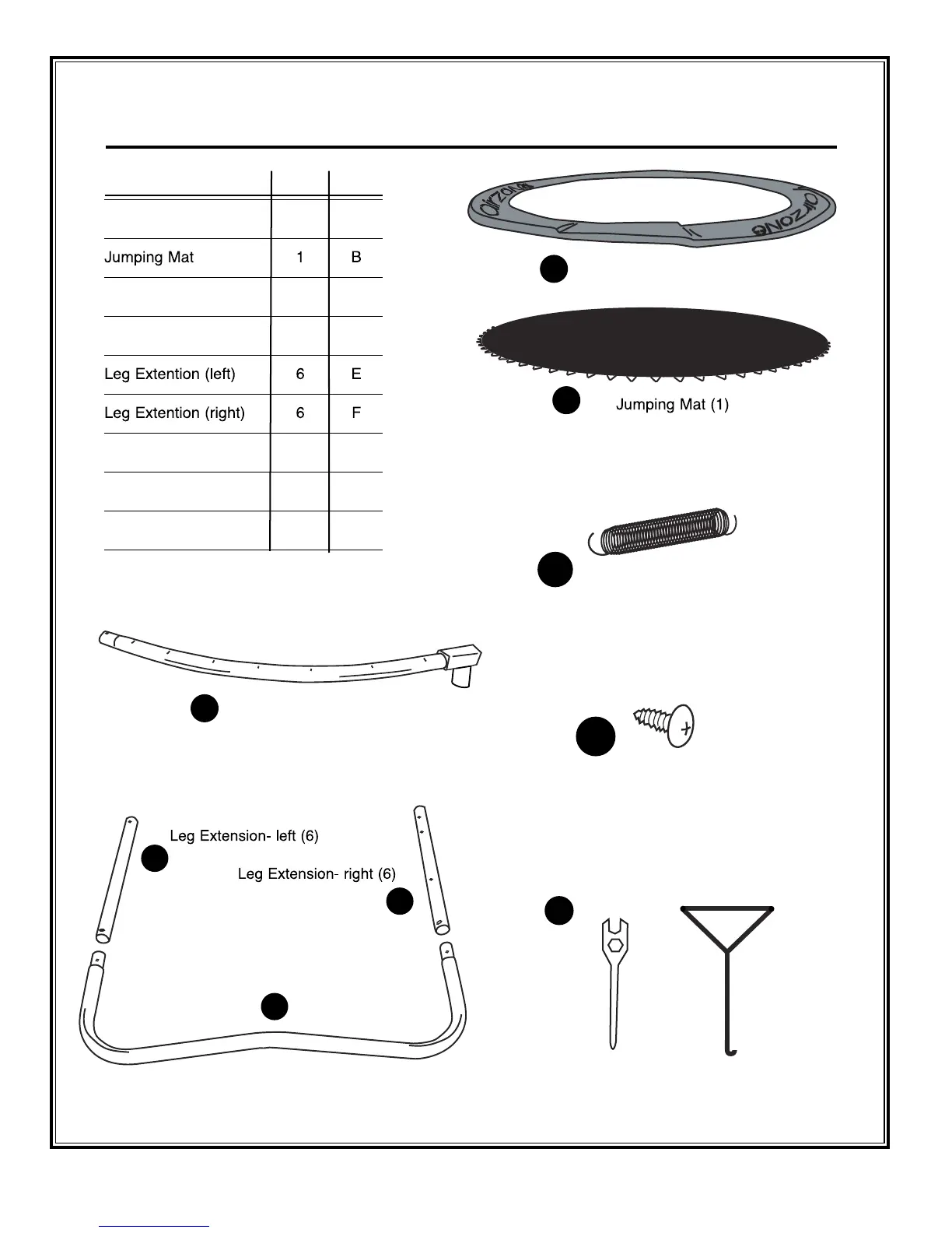 TRAMPOLINE PARTS LIS T