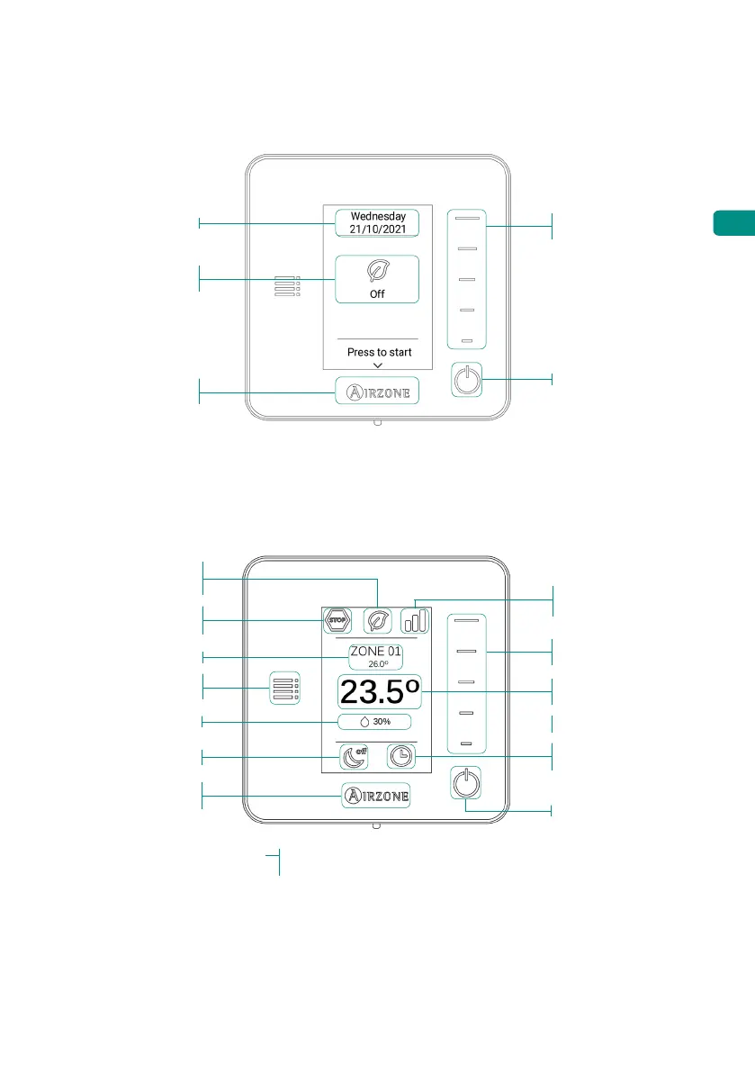 Access the main screen by pressing "Airzone" from the screensaver:
