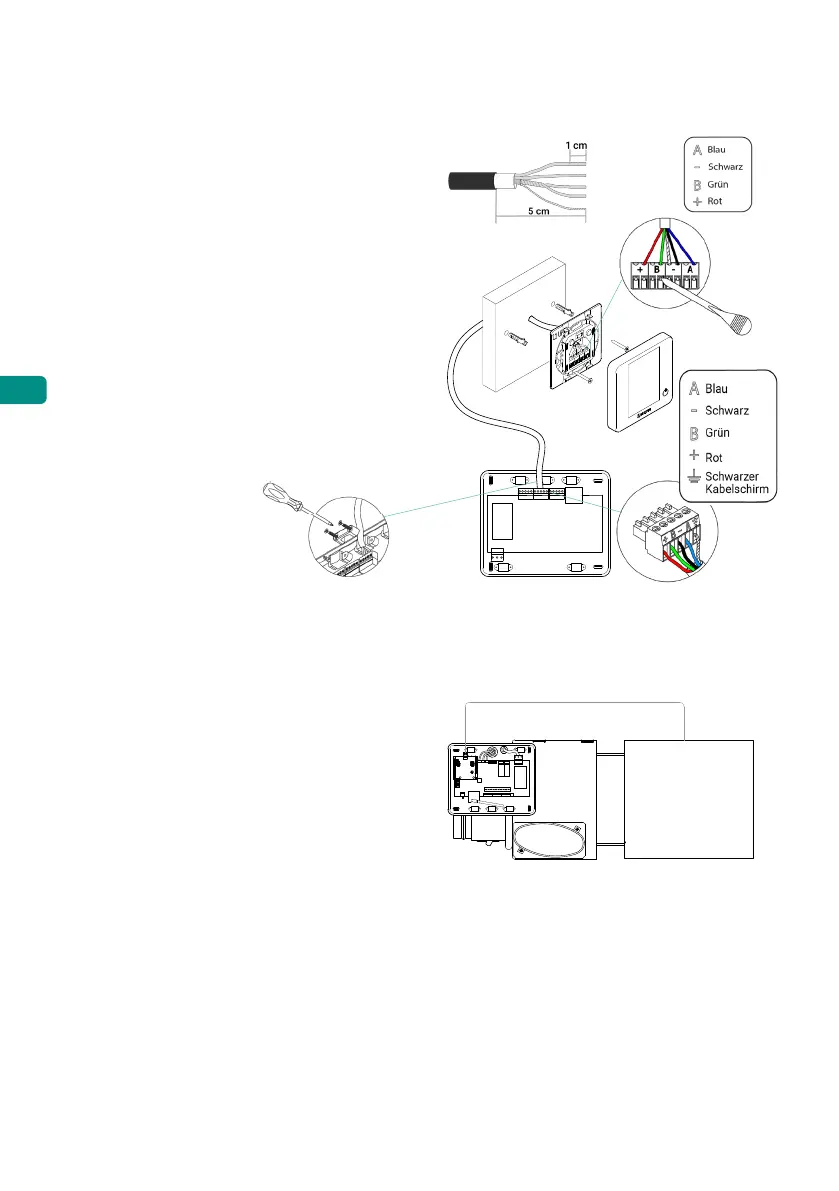 Pole „A“ und „B“ des Kommunikationsbusses angeschlossen werden.