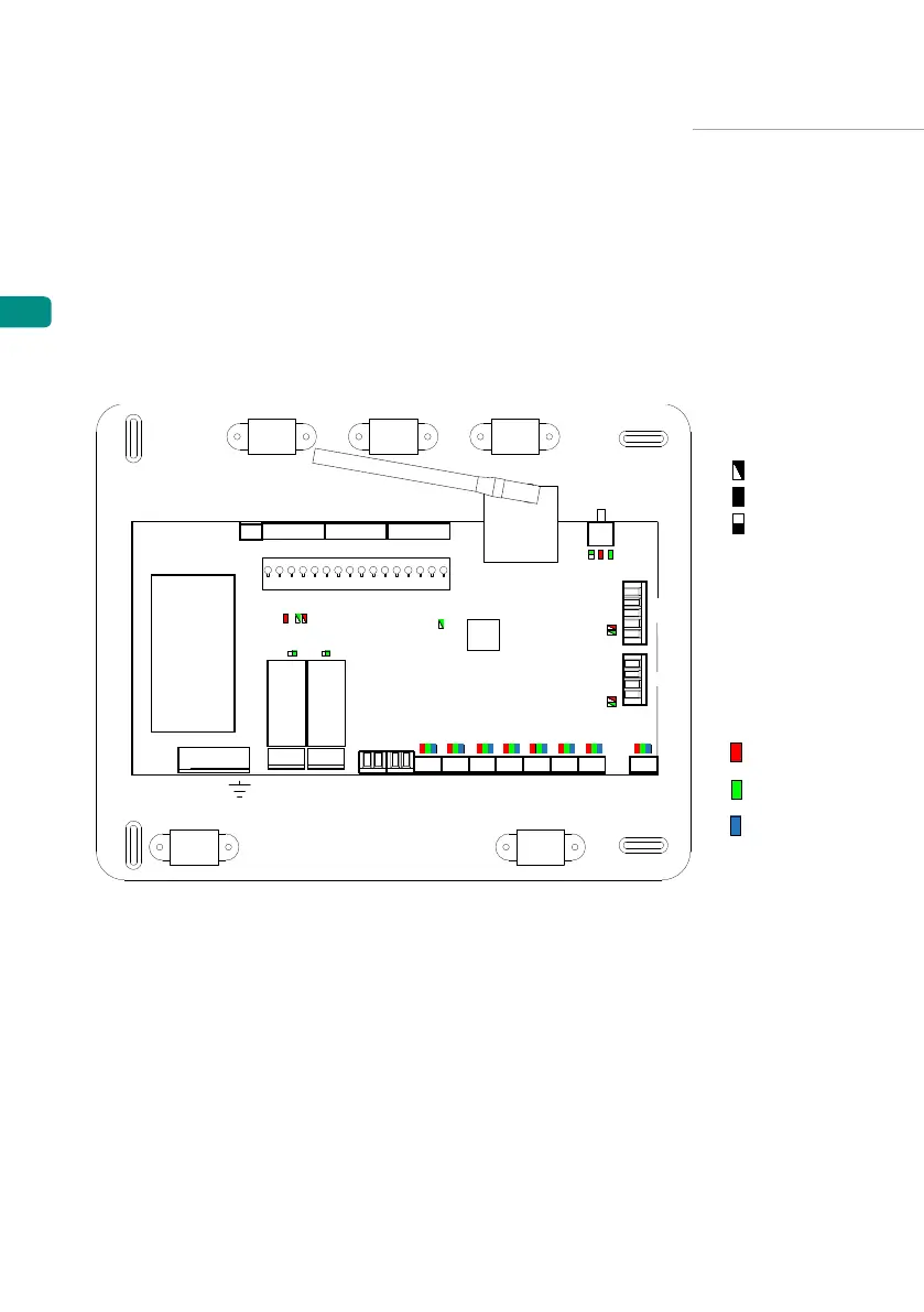 1. État des LED de la platine centrale et autres éléments de contrôle connectés. Consultez la
