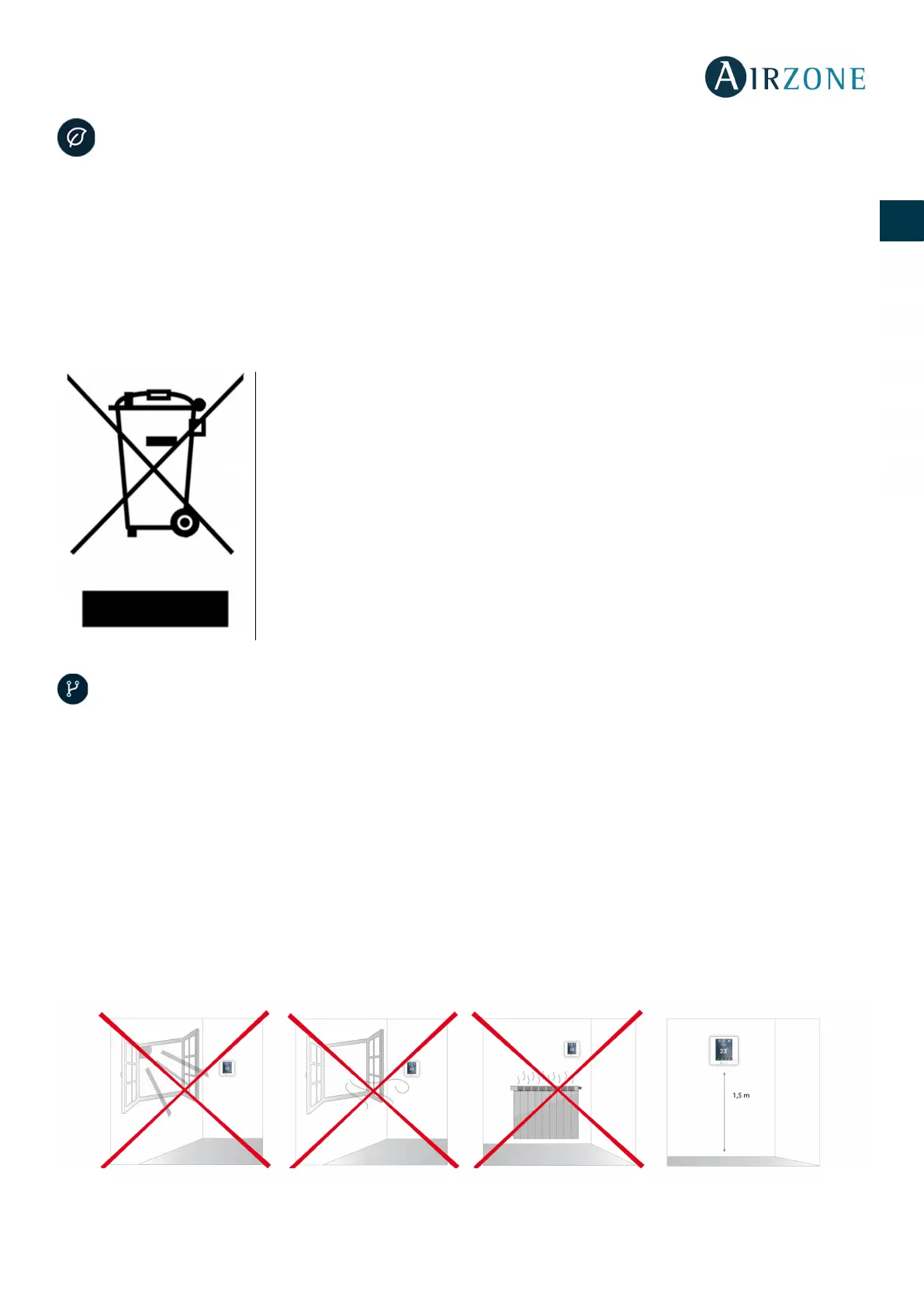 • Siga las siguientes recomendaciones para la ubicación de los termostatos: