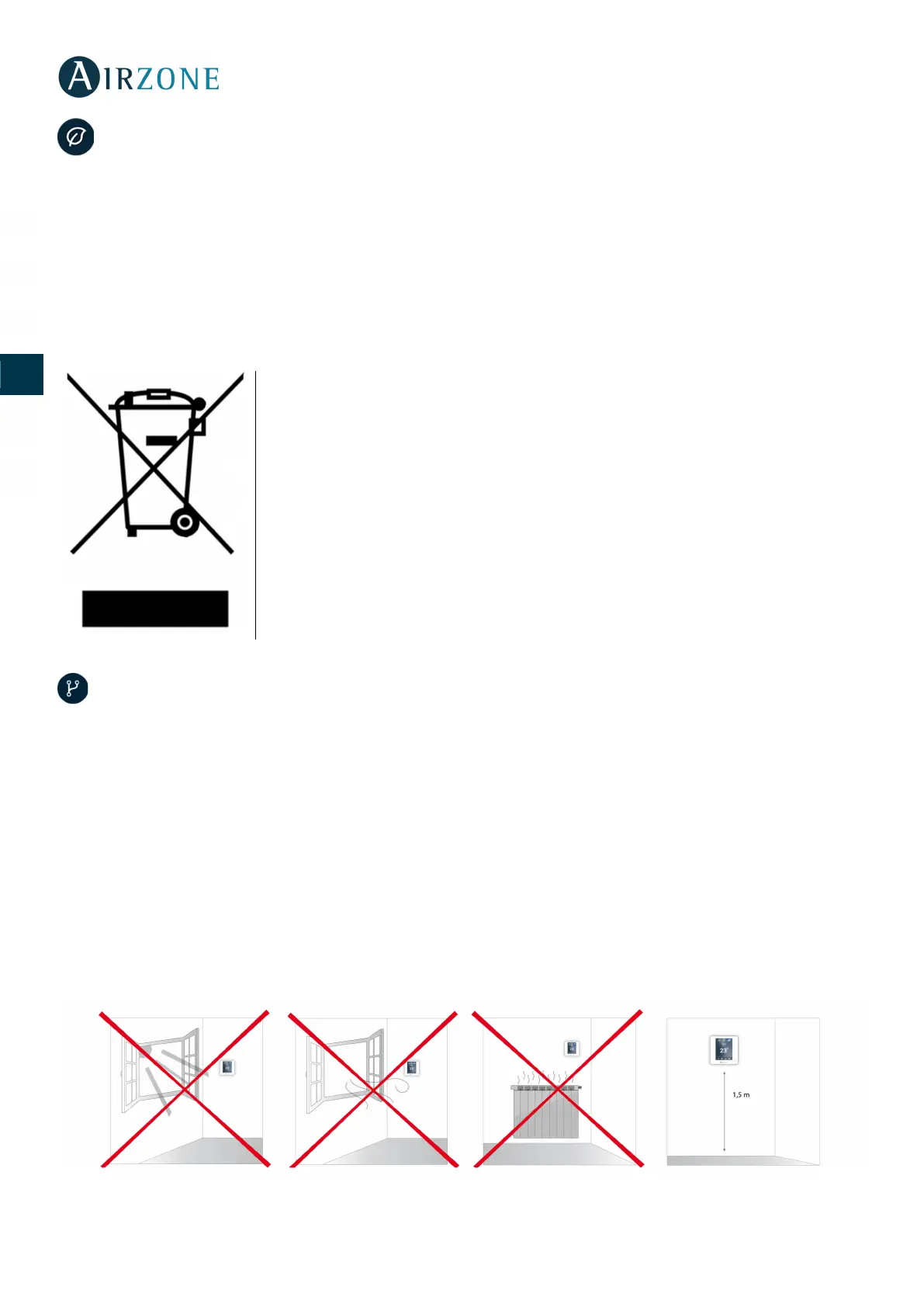 • Siga las siguientes recomendaciones para la ubicación de los termostatos: