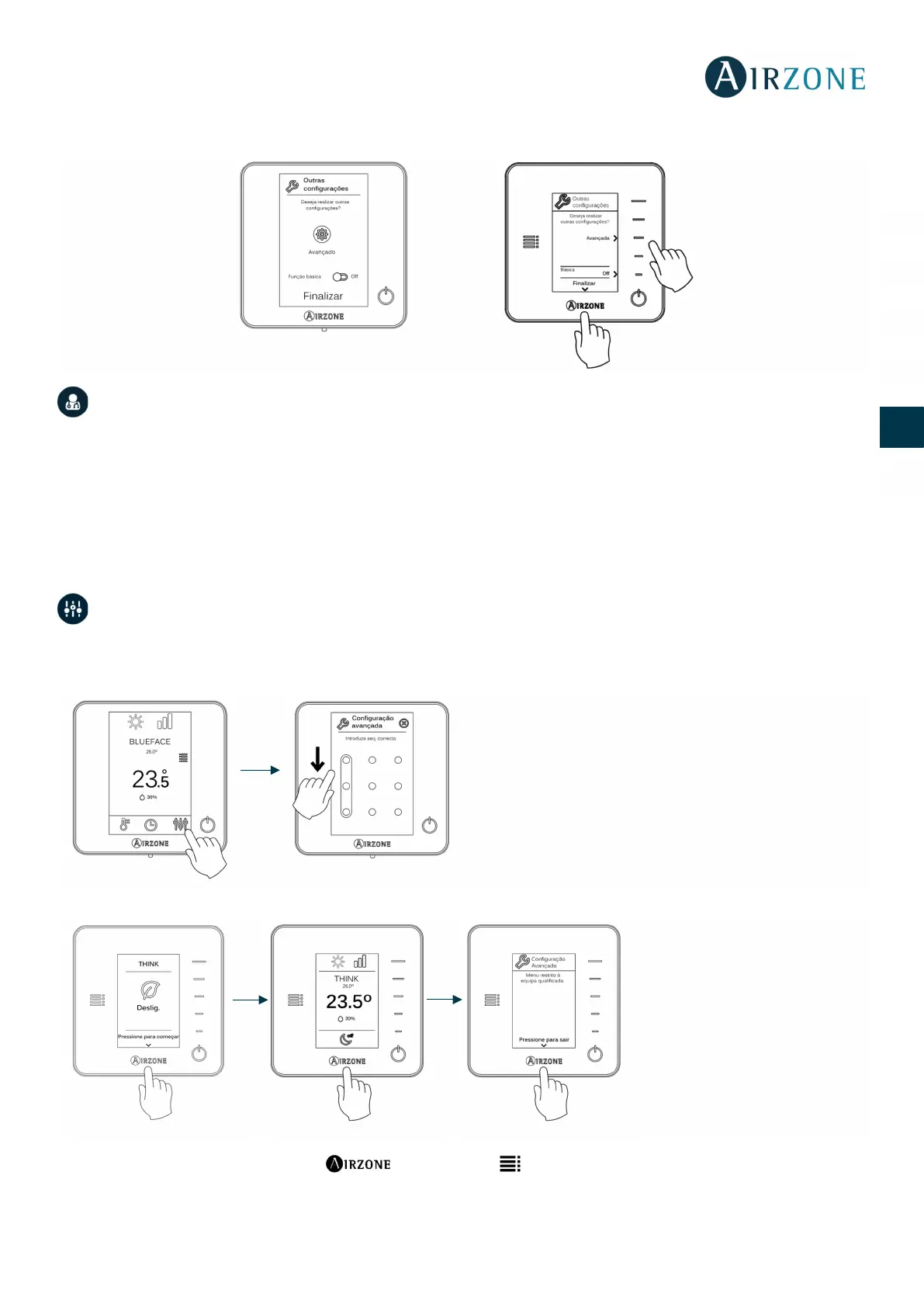 Importante: Nos termostatos Think, utilize para confirmar e para retornar, caso se encontre em submenus.