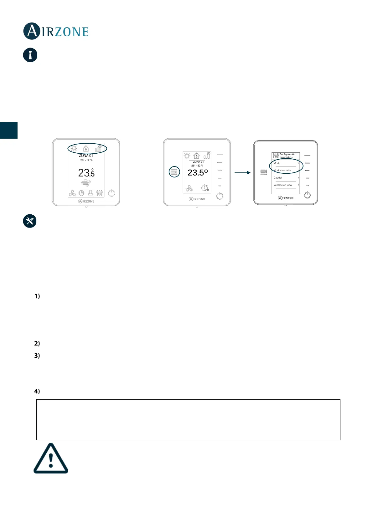 - Think Zona: En el menú de configuración, no dispondrá del menú de Modo de funcionamiento y Modo usuario.