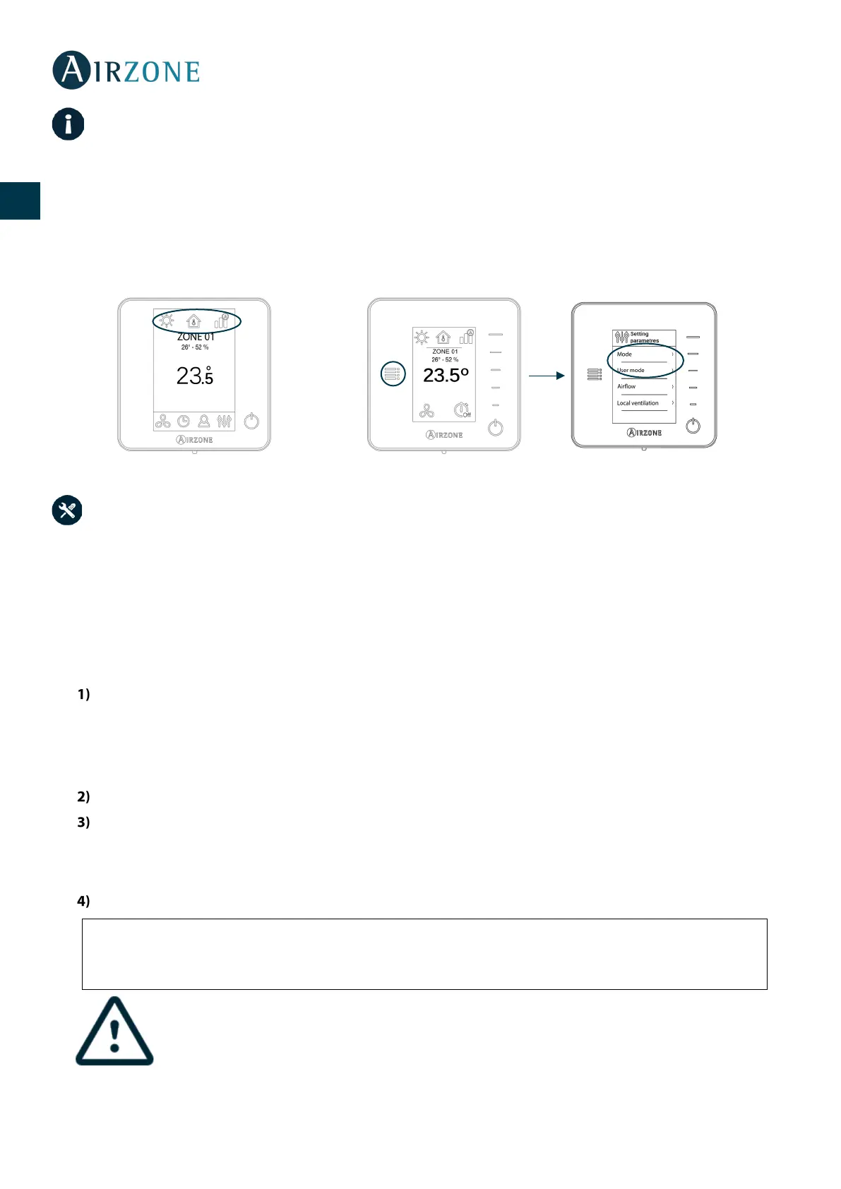 Airzone systems enable the management of Main and Zone interfaces. Main controllers enable mode management or user