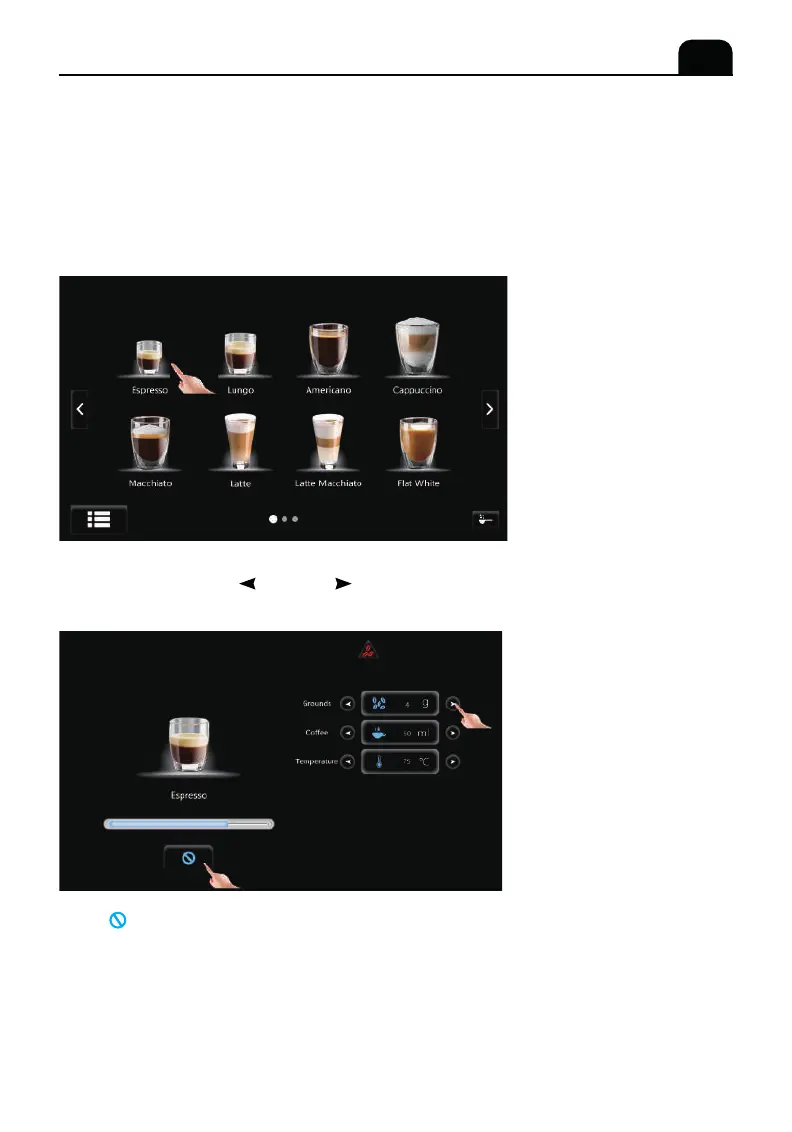 Tryck för att omedelbart stoppa kaffetillverkningen under produktionsprocessen.