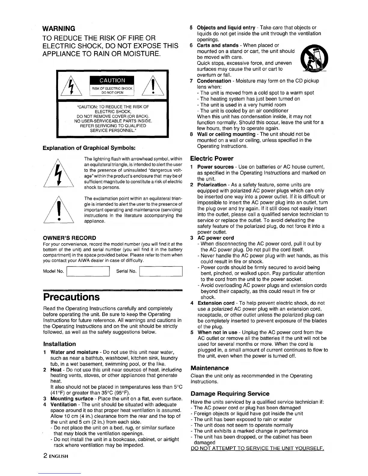AC outlet or remove all th~ batteries if the unit will not be