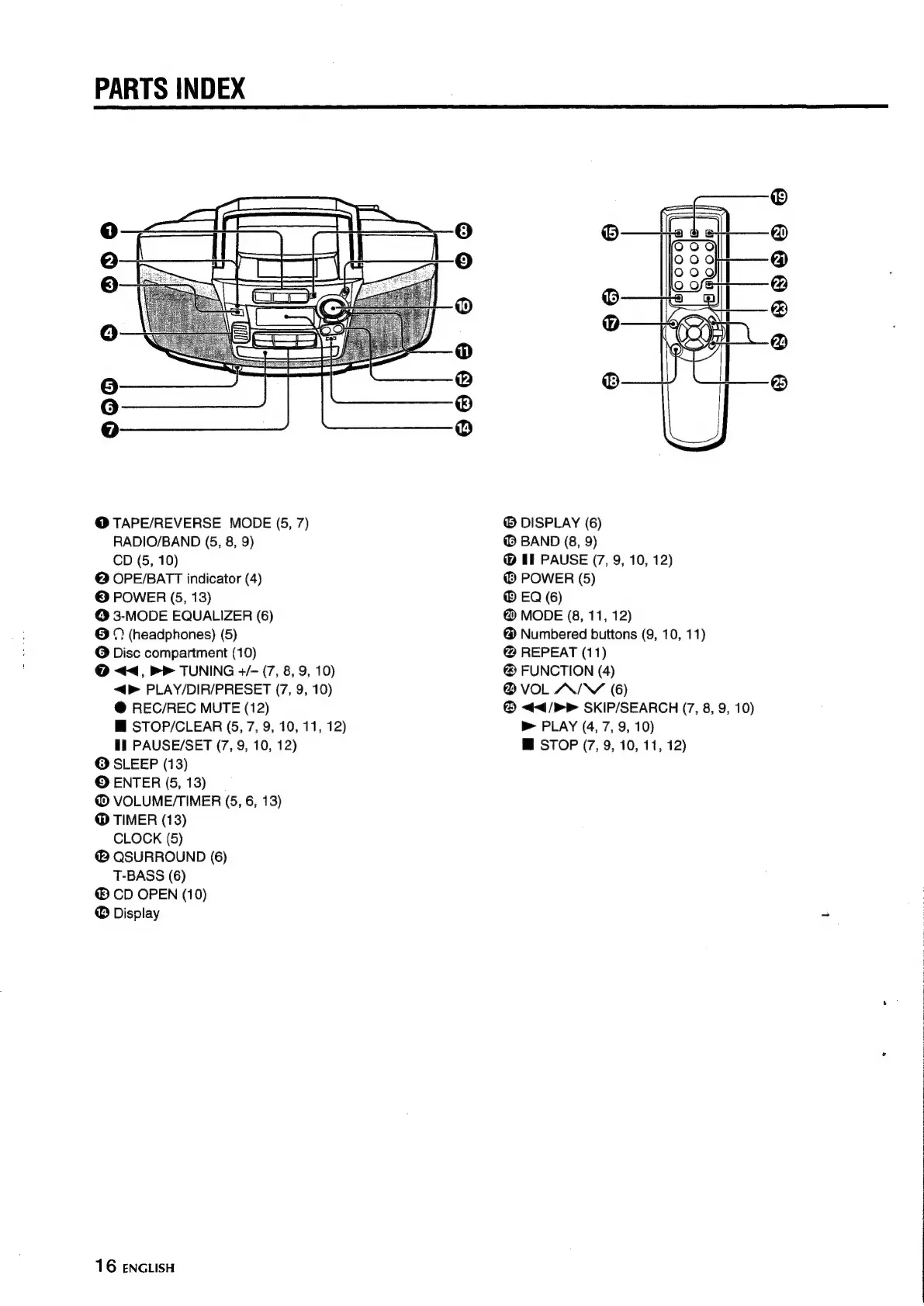 Aiwa CSD-EL33 - Parts Index; Component Identification