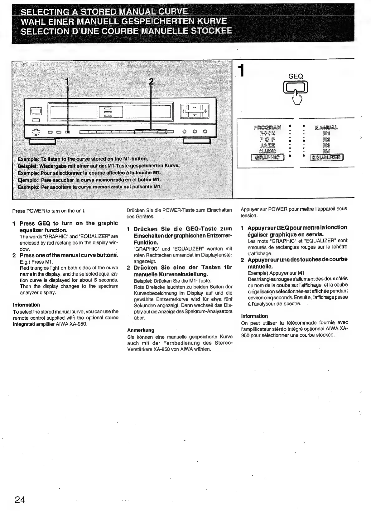 Aiwa GE-950 E - SELECTING STORED CURVES; Recalling Manual Curves
