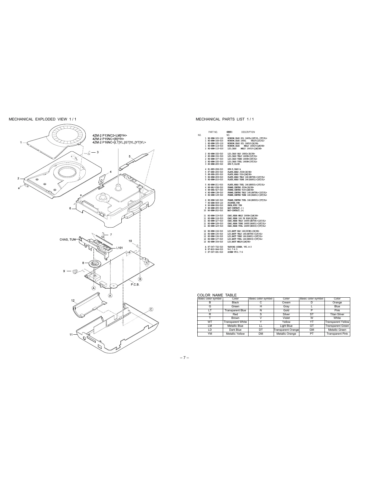 MECHANICAL EXPLODED VIEW 1 / 1 MECHANICAL PARTS LIST 1 / 1