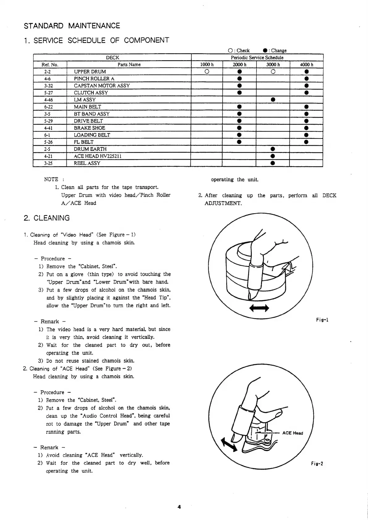 Aiwa HV-E212 - Maintenance Procedures; Standard Maintenance (Schedule & Cleaning)