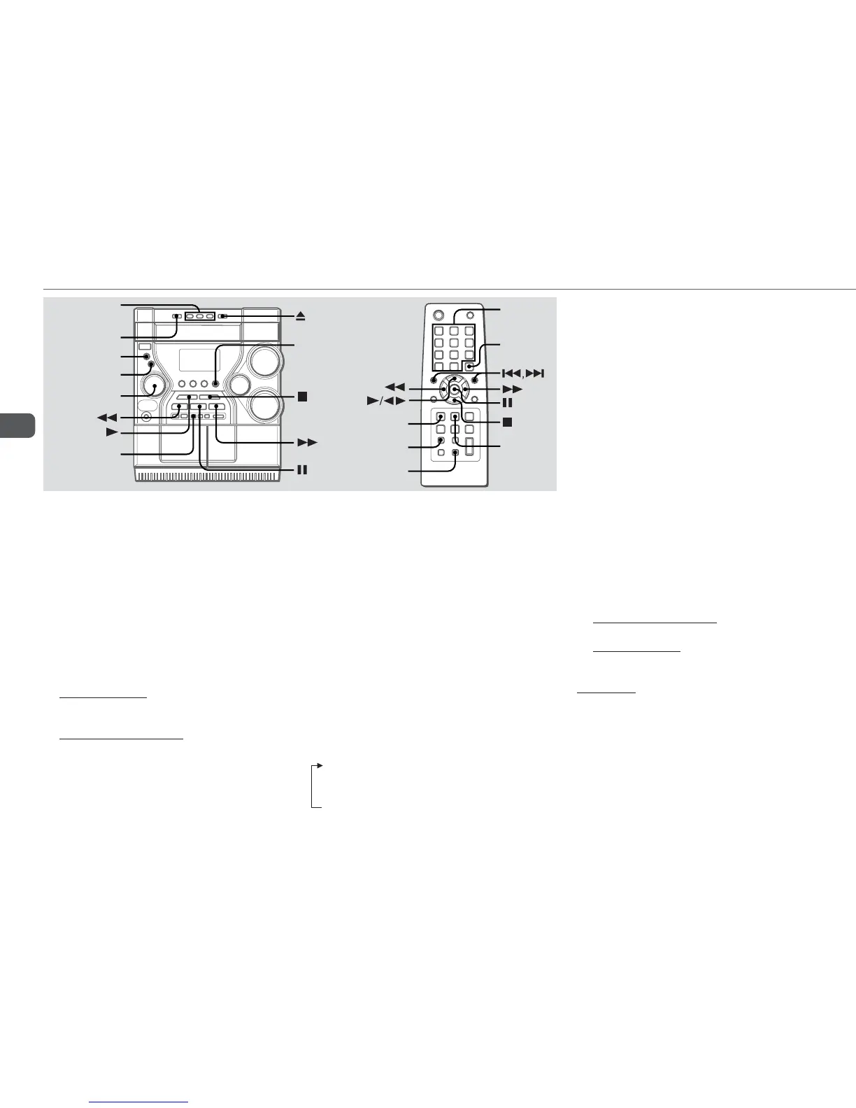 Plays all the tracks or one track on the discs repeatedly.