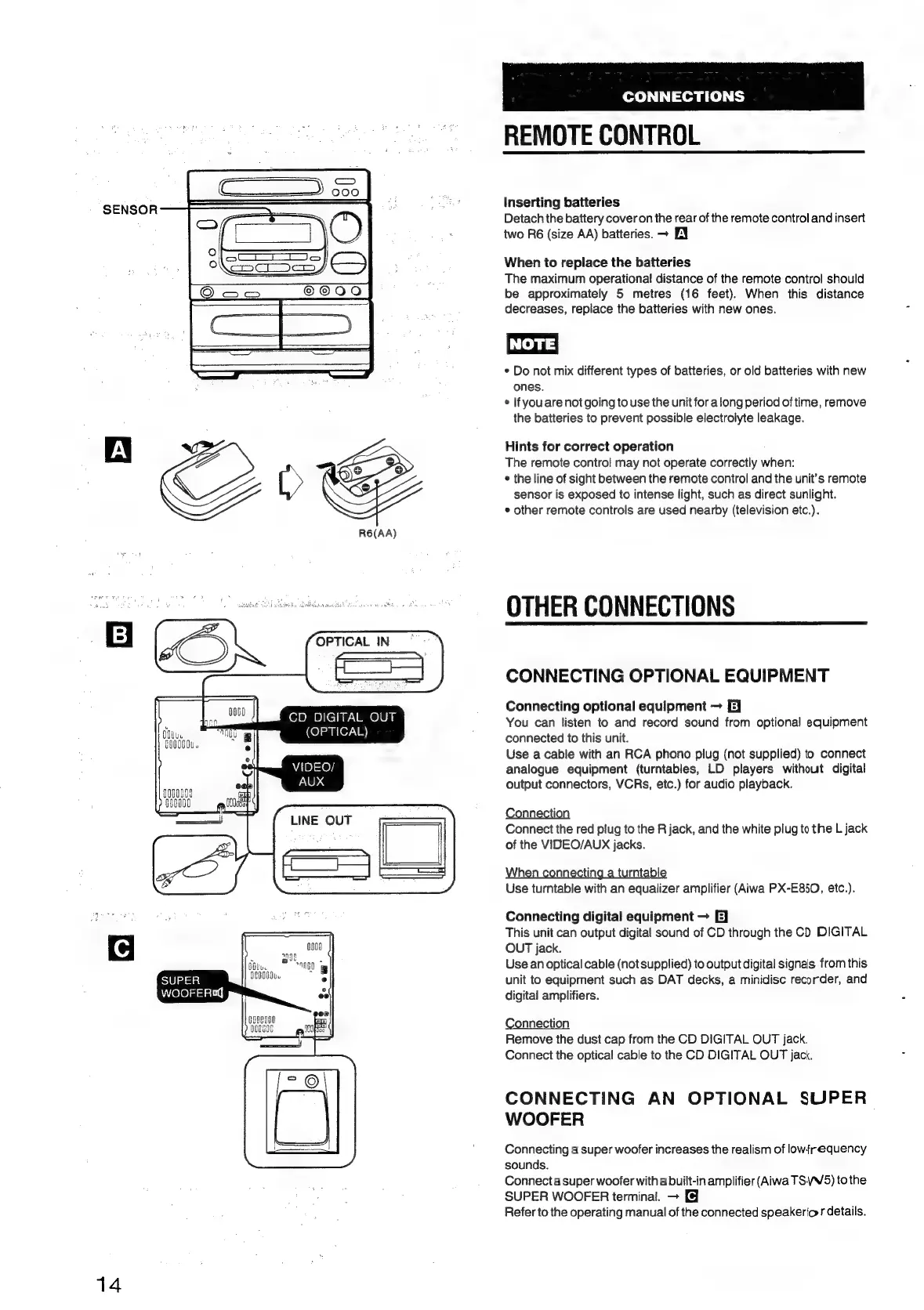 Aiwa NSX-430 - REMOTE CONTROL; Inserting batteries; When to replace the batteries; Hints for correct operation