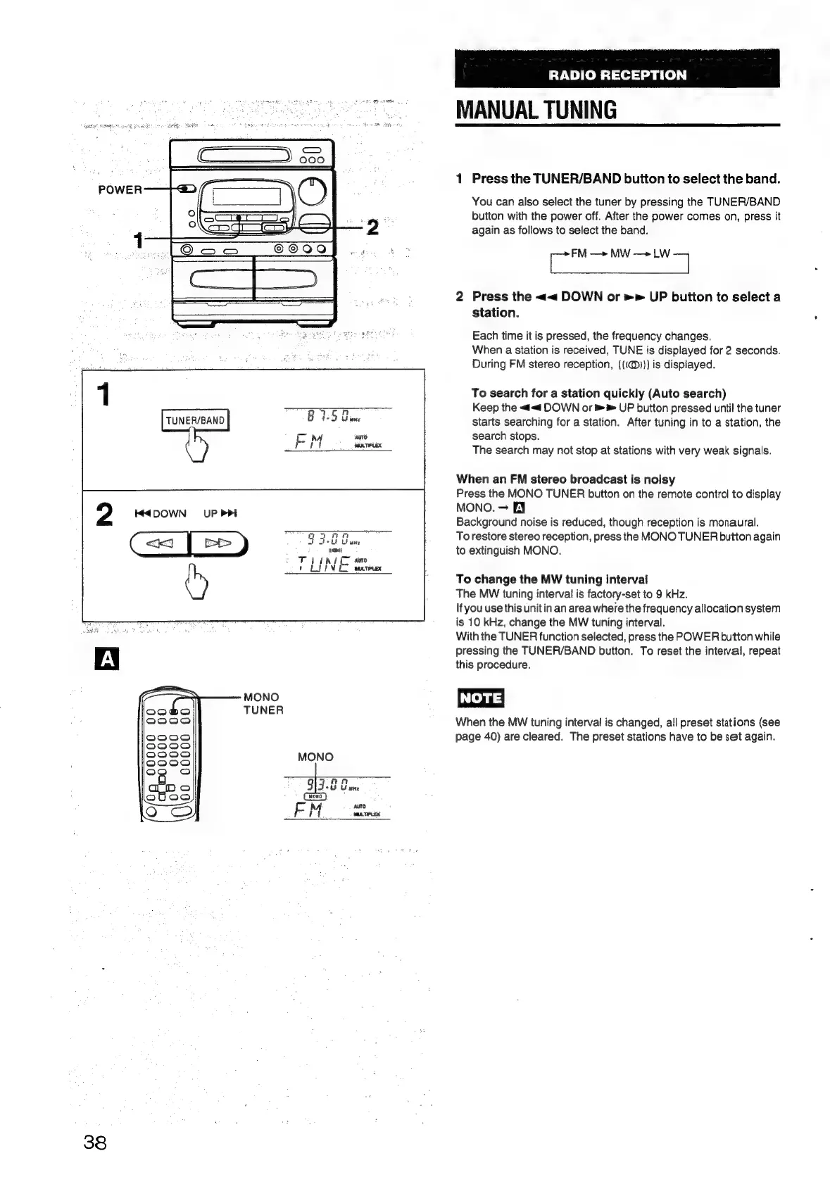 Aiwa NSX-430 - RADIO RECEPTION; MANUAL TUNING