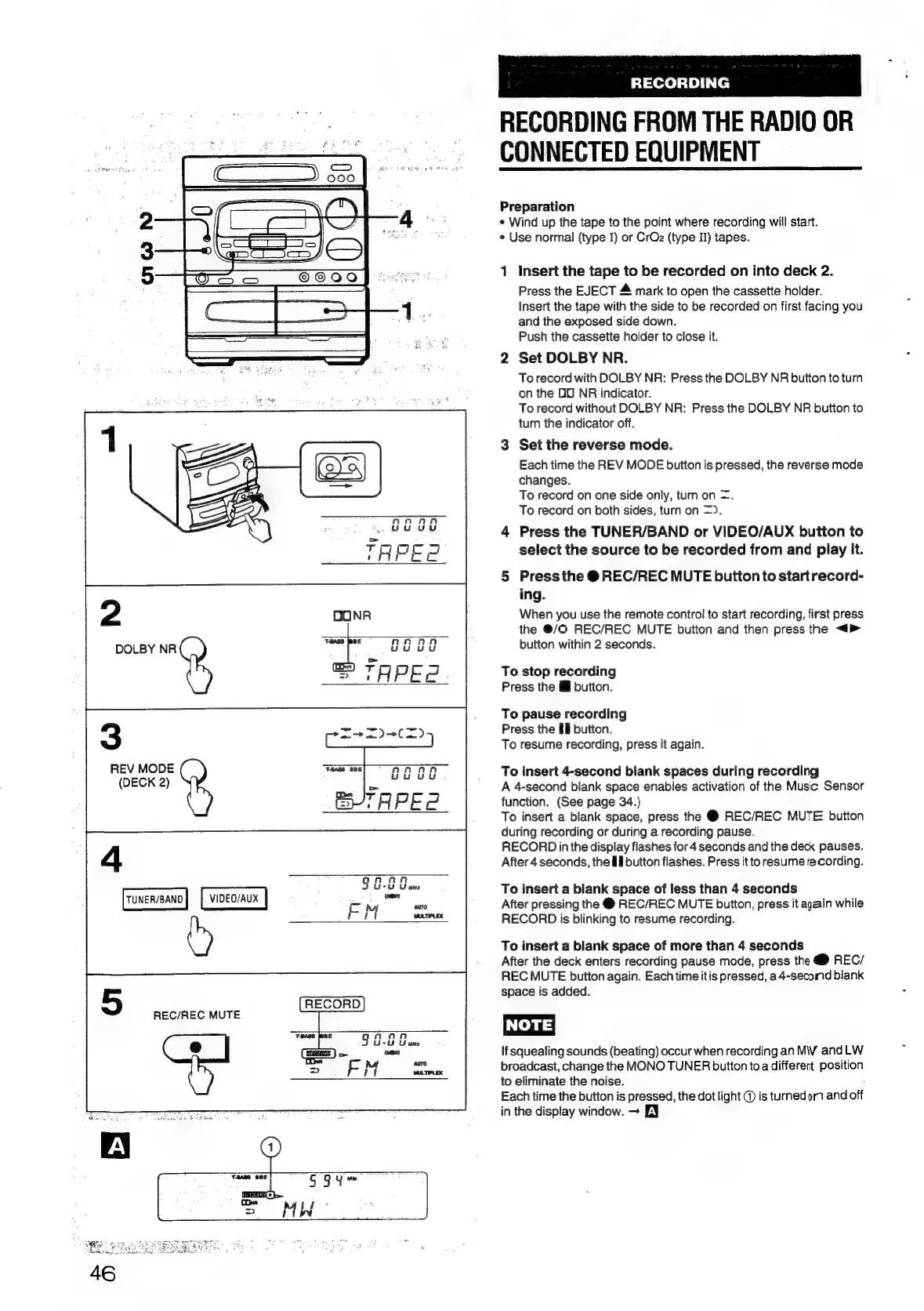 Aiwa NSX-430 - RECORDING; RECORDING FROM THE RADIO OR CONNECTED EQUIPMENT