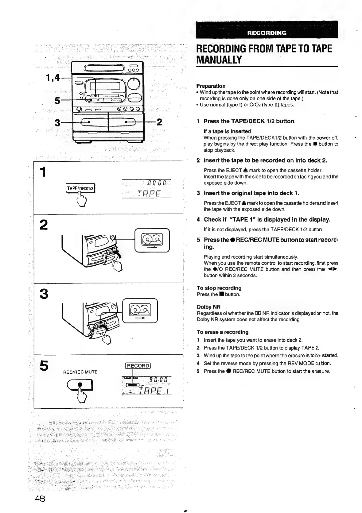 Aiwa NSX-430 - RECORDING FROM TAPE TO TAPE MANUALLY