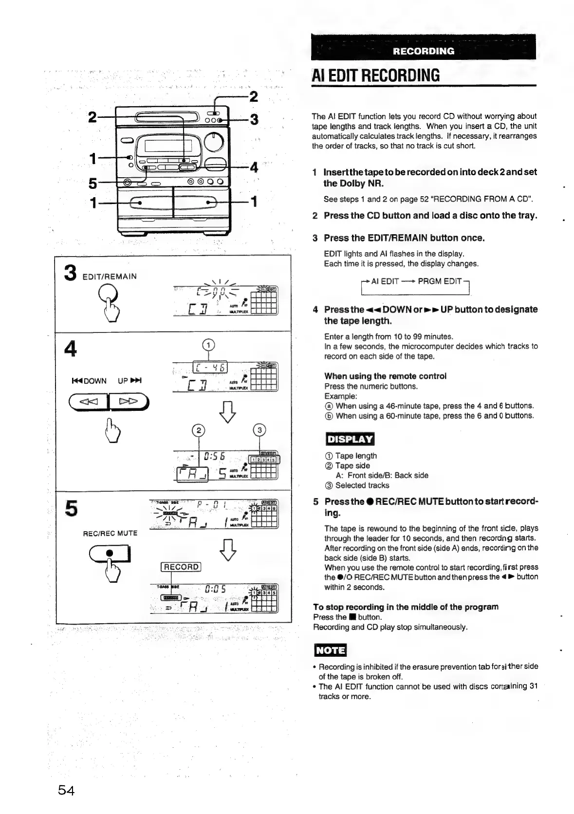 Aiwa NSX-430 - AI EDIT RECORDING