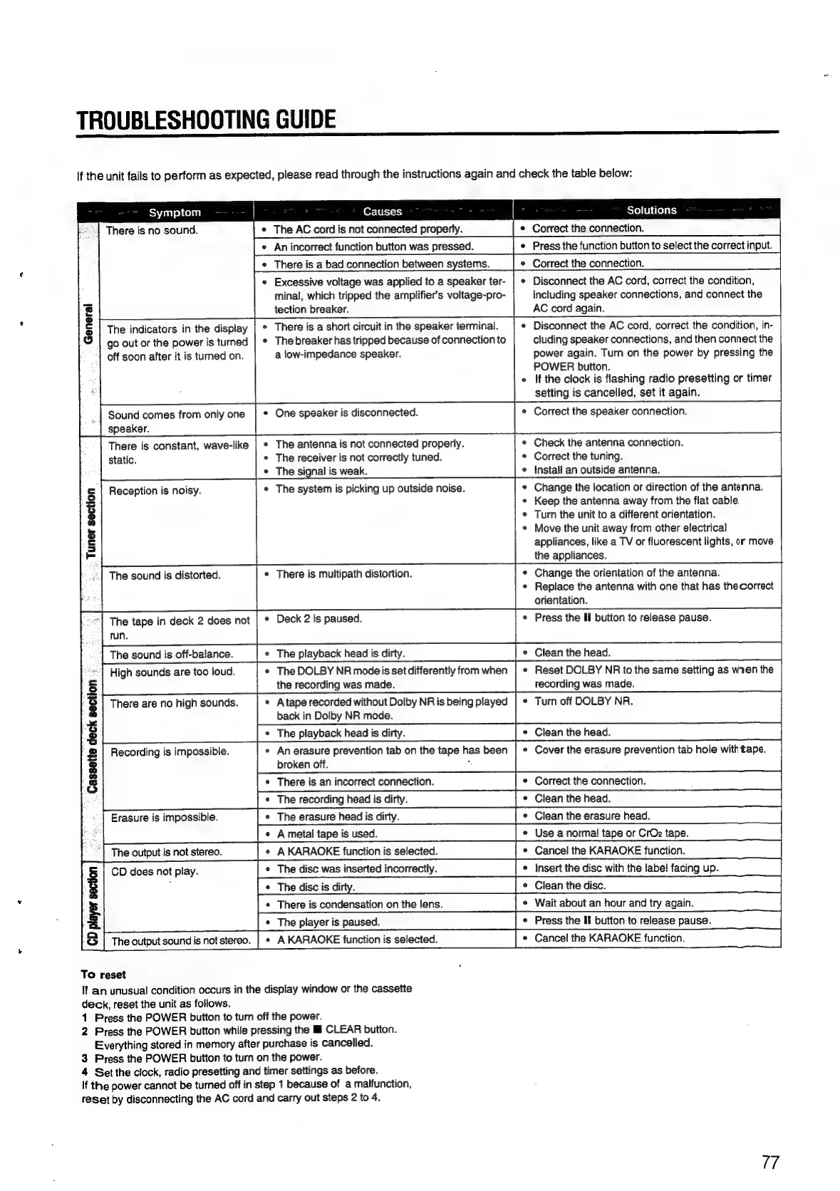Aiwa NSX-430 - TROUBLESHOOTING GUIDE; General; Tuner section; Cassette deck section