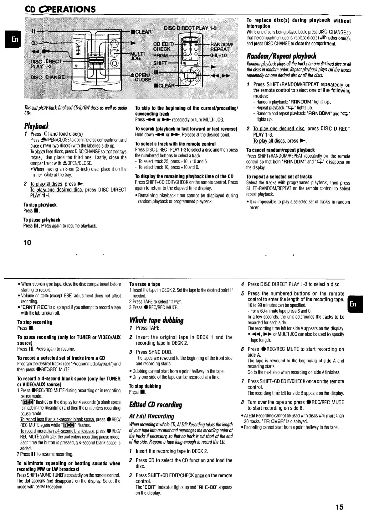 Aiwa NSX-SZ310 - CD Operations; Basic Playback; Track Navigation and Search; Random and Repeat Playback