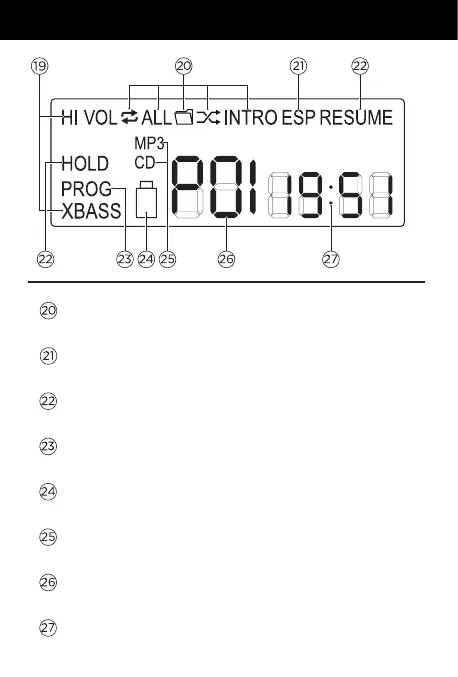Aiwa PCD-810RD - Display Indicators and Functions; ESP Function Indicator; Resume & Hold Indicators; Low Battery Indicator