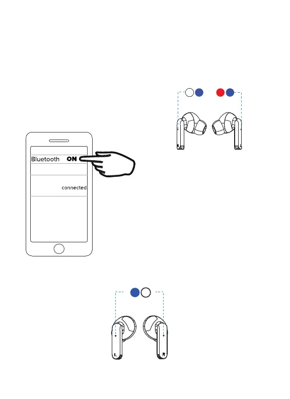 Both earphone’s LED Indicator will slowly flash blue once paired to your phone.