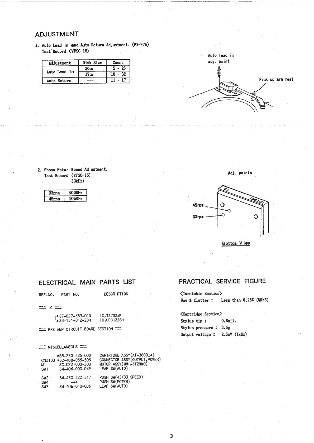 Aiwa PX-E75 - AIWA PX-E75;E45 Adjustment Procedures; Auto Lead In and Auto Return Adjustment; Phono Motor Speed Adjustment; AIWA PX-E75;E45 Service Figures