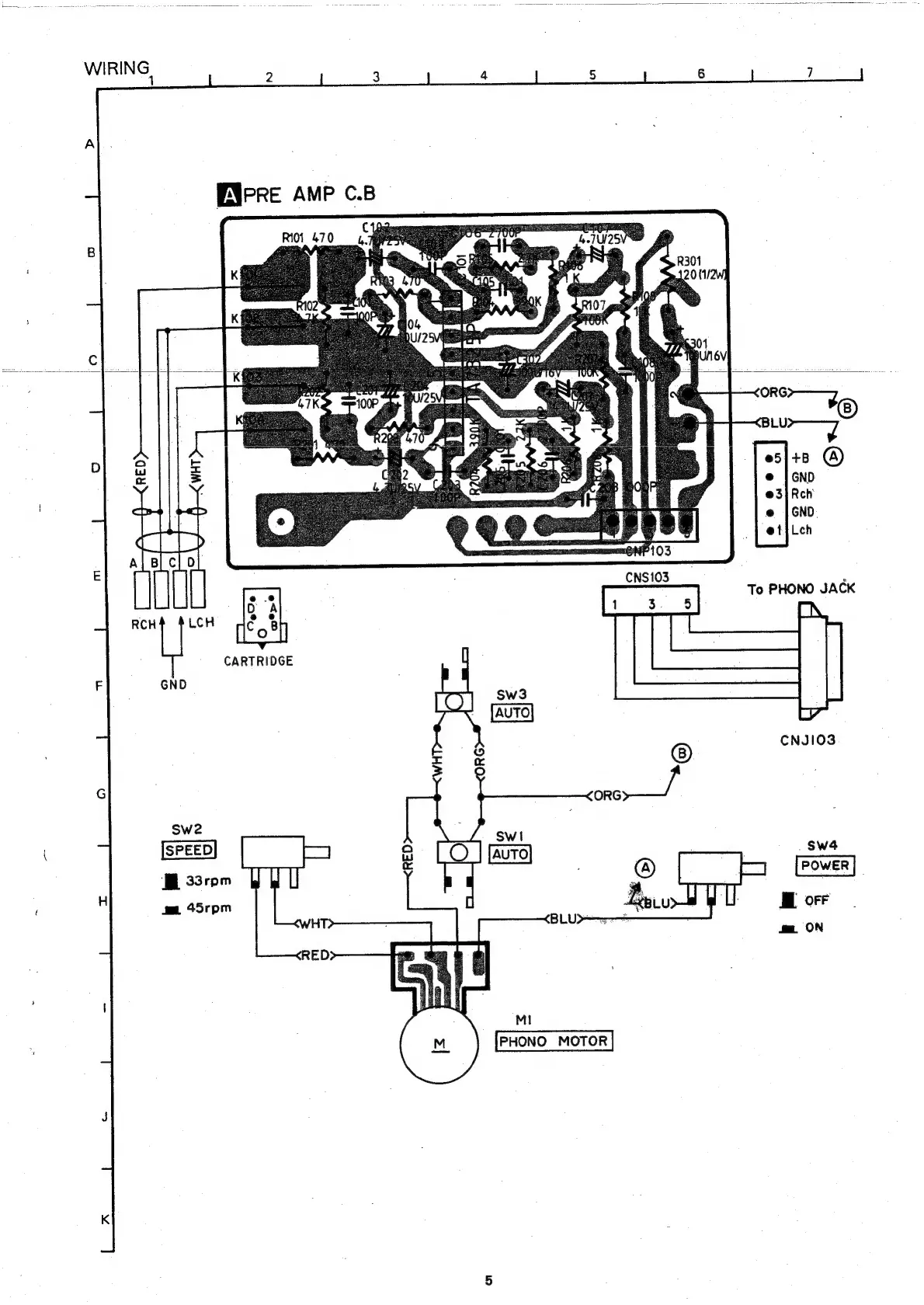 Aiwa PX-E75 - AIWA PX-E75;E45 Wiring Diagram; Pre Amplifier Board Wiring