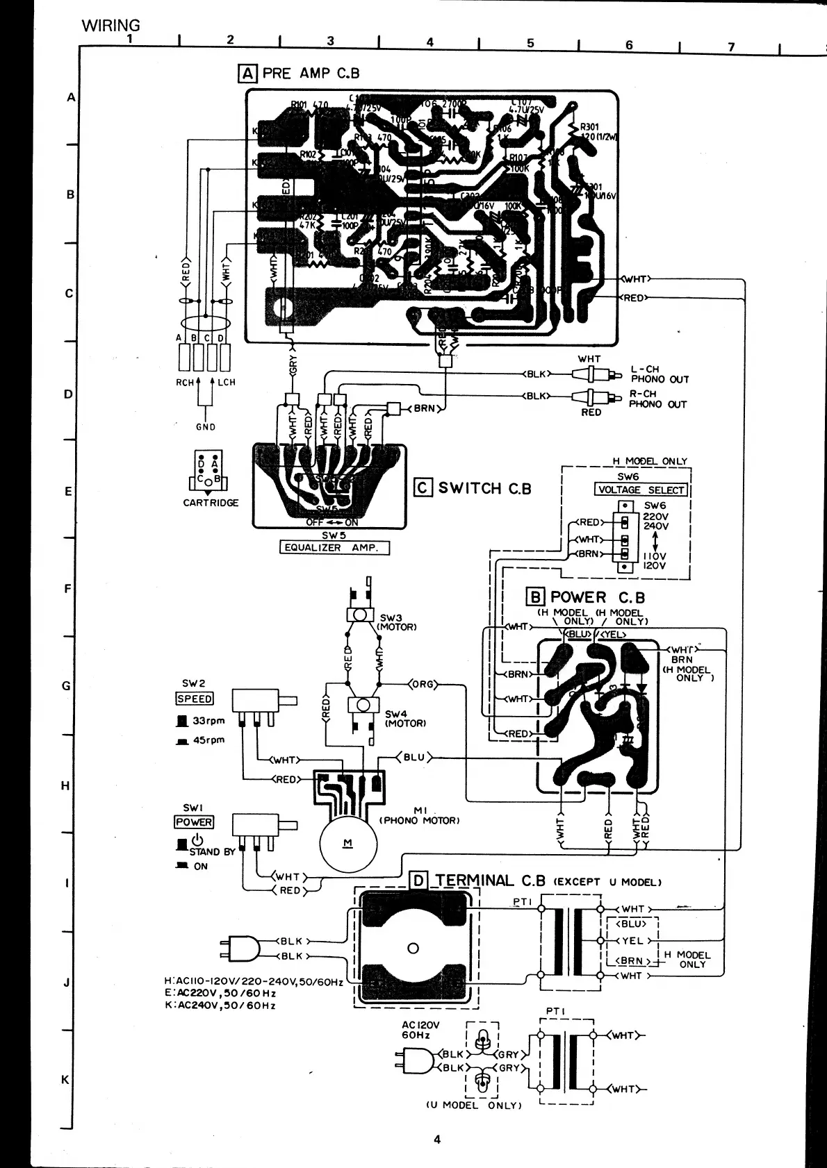 Aiwa PX-E80 - WIRING; Pre Amp C.B. Wiring; Switch C.B. Wiring; Power C.B. Wiring