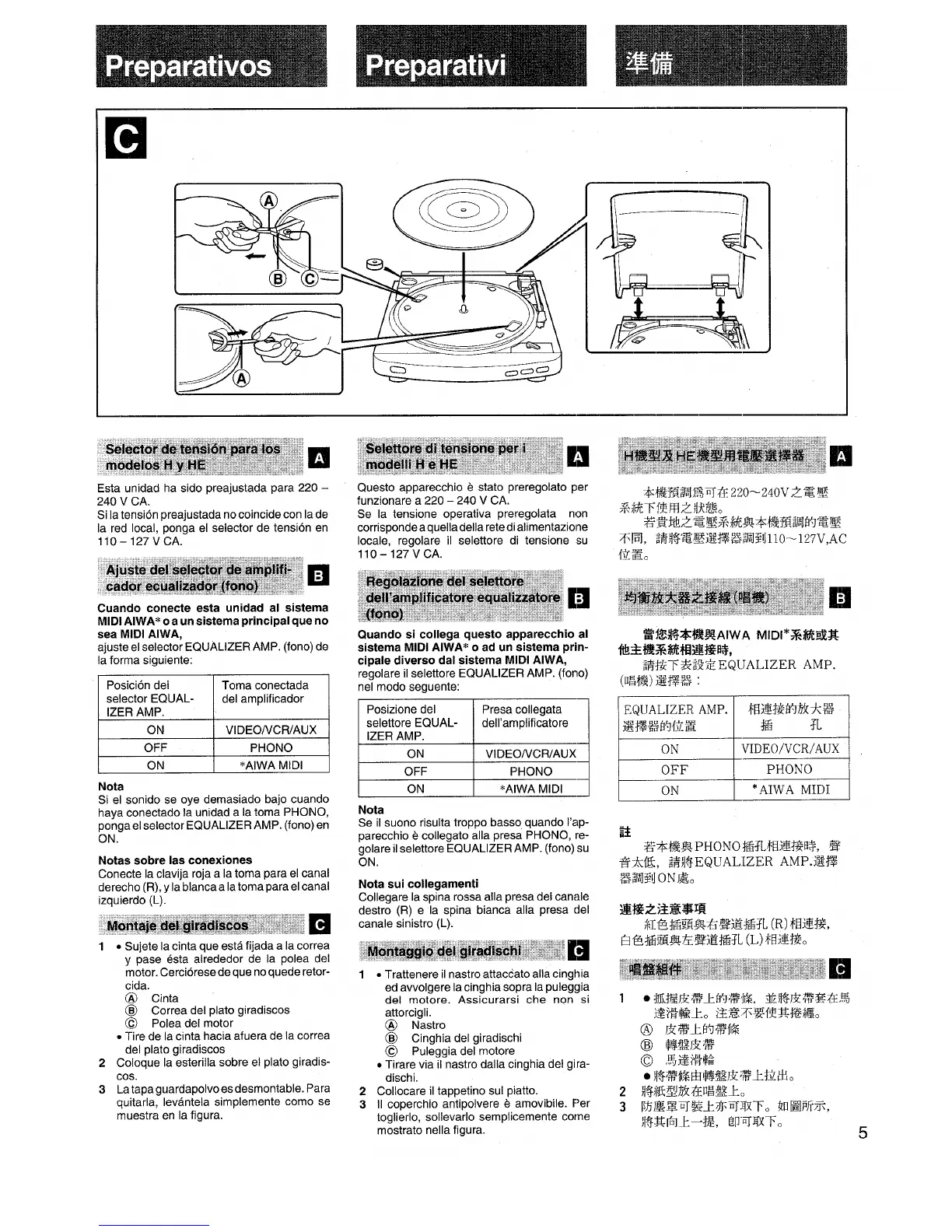 ajuste el selector EQUALIZER AMP. (fono) de